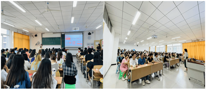 首先,由京东物流重庆人力资源负责人段霞宣讲,她为同学们介绍了京东的成长经历、发展前景、工作岗位以及新锐之星项目。她重点介绍了京东系统化的人才培养政策:第一步是通过人才盘点和360测评进行人才挖掘,第二步是通过像“新锐之星”这样的定制化项目培养人才,第三步是发展人才,有着明确而公平的晋升发展渠道。在宣讲过程中,京东的成就和业界地位、段经理的风趣幽默给同学们留下了深刻的印象。同时,同学们对在京东的工作内容也有了更深入的认知。