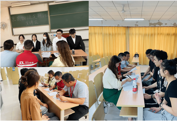 此后,京东物流重庆校企合作经理姚敏和我校毕业生京东物重庆合川营业部经理李永茜结合自身的经历及感受对同学们关于“定制班”的工作内容、薪酬待遇、考核机制进行答疑解惑,现场气氛十分热烈。