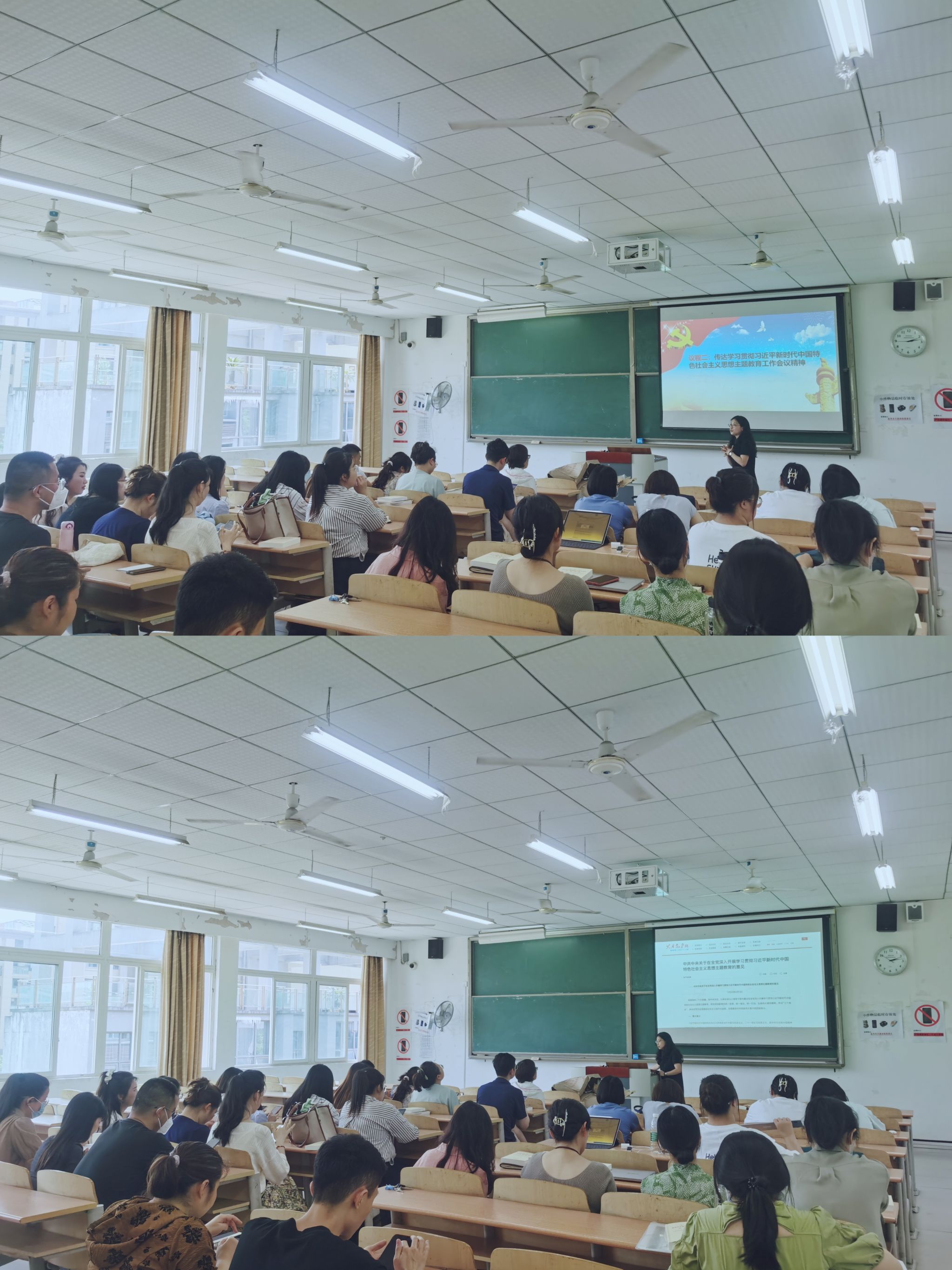 5月17日,淬炼商学院教师党支部召开党员大会,传达学习贯彻习近平新时代中国特色社会主义思想主题教育工作会议精神和习近平总书记重要讲话精神,会议由淬炼商学院教师党支部书记曾璐同志主持,全体党员老师参与。