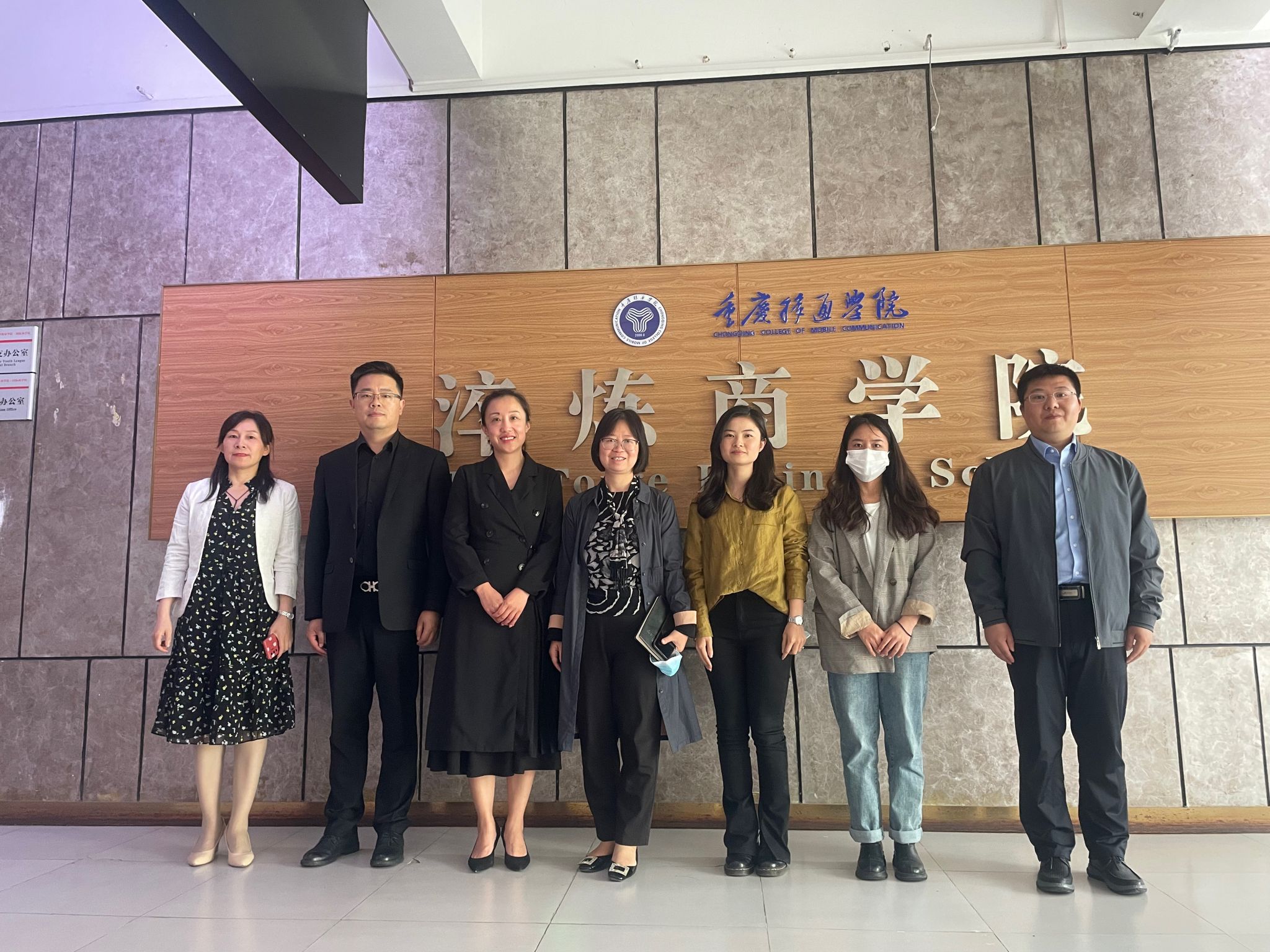陈晓曼副院长基于重庆移通学院的办学定位、使命展开介绍淬炼商学院的机构设置和育人特色,特别针对“专业商科”、“全校商科”进行了详细介绍。随后,重庆得盟企业管理咨询公司总经理齐欣介绍了得盟企业从2013年至今的各发展阶段和公司运营体系、正版授权项目,针对大学生专题、教师专题、“产学研”专题三个专题进行了详细介绍,齐总谈到得盟企业管理咨询有限公司专注于为重庆智能制造企业提供中高端人才推荐、人才发展与培训等内容。最后,双方就校企合作的融合点展开交流,其中围绕如何更好的为《数智化企业的人力资源管理》课程赋能,双方提供合适的智能制造中小企业案例植入课程、带学生走访企业和创业园感受真实企业、提供见习和就业机会等达成初步共识。