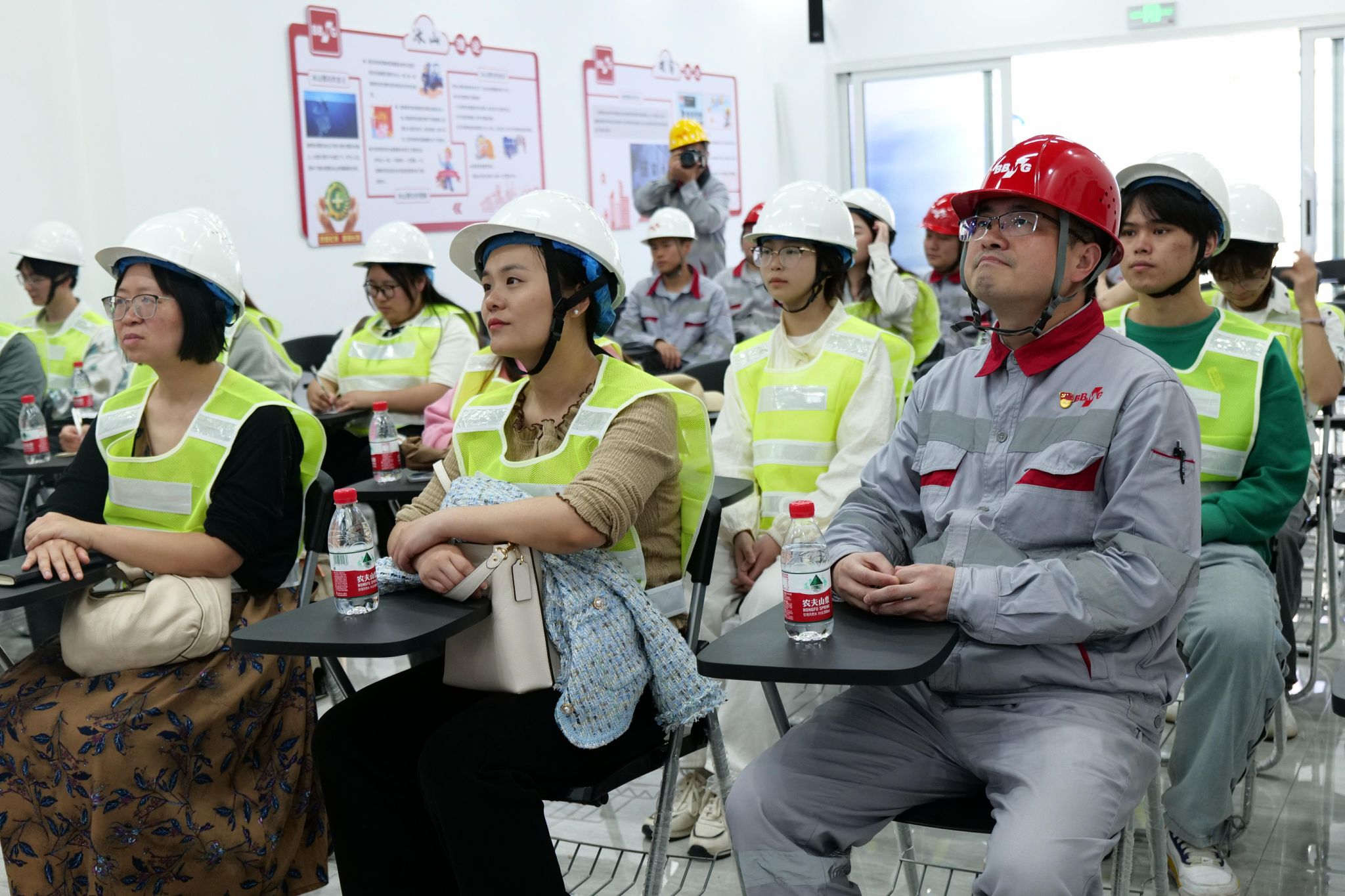 冀东水泥重庆合川有限责任公司柯岩副总经理和企业相关人员陪同我校师生参观了工厂的办公区域、生活休闲区域、生产区域等,特别是带领师生们体验了智能VR安全体验培训馆。该安全体验培训馆建成于2021年,借助信息化、智能化、数字化等新技术应用推动企业安全培训模式“升级换代”。该安全体验培训馆继承和弘扬了冀东水泥的企业安全文化,有效提升了作业人员对于事故的仿真体感和安全培训的时效性,对全面强化人员安全素质大有裨益,成为该公司开展安全生产宣教和培训的重要阵地。