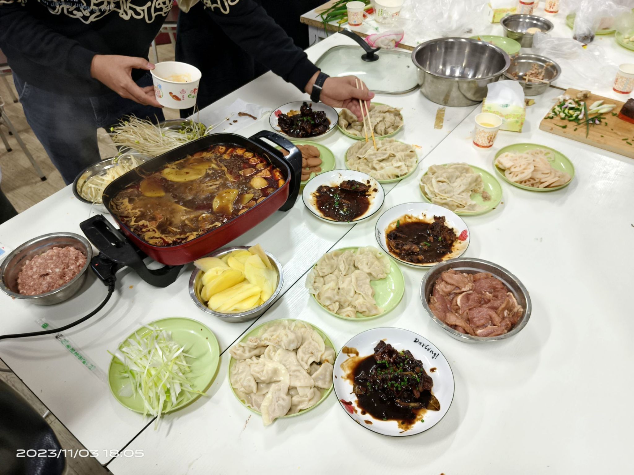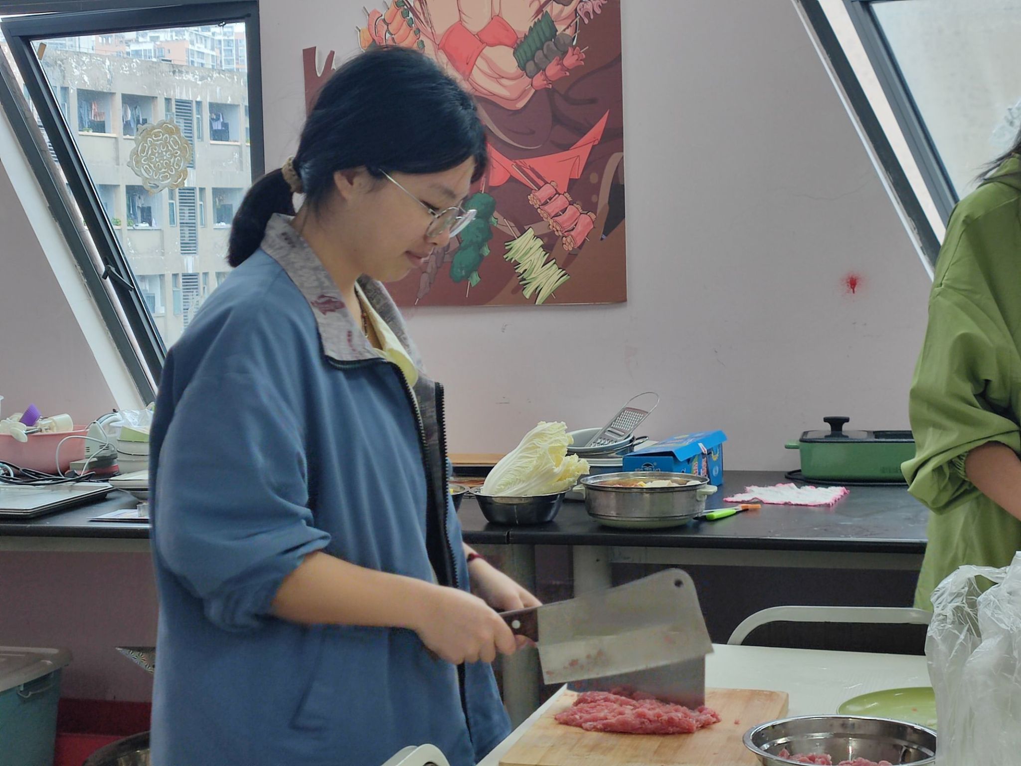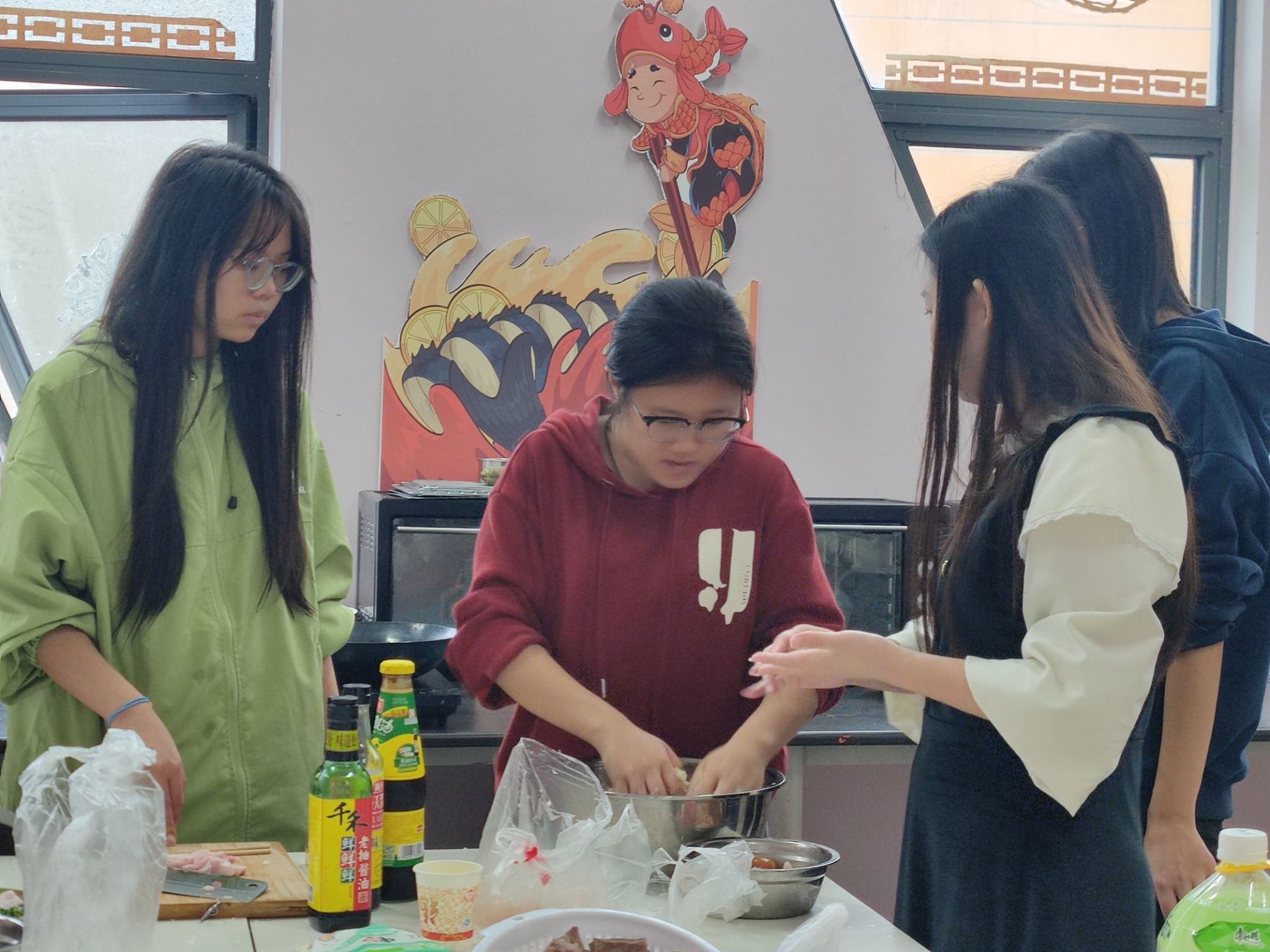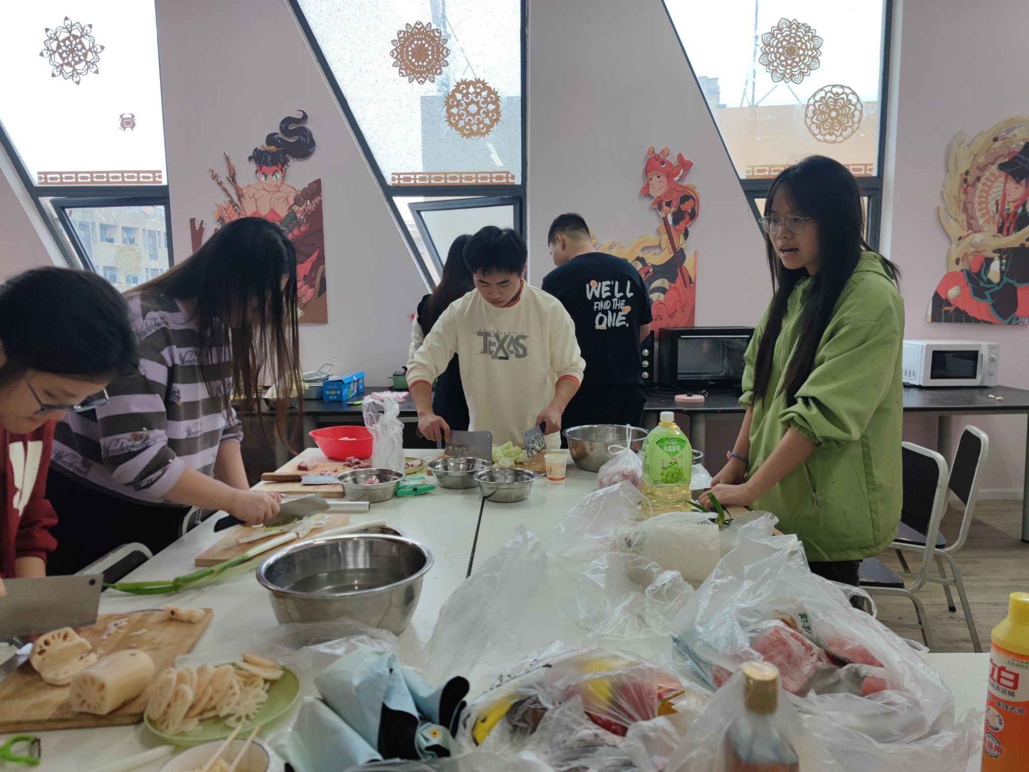 本次师生团建活动的主要内容是烹饪,品尝大家共同努力做出来的晚饭。活动正式开始前,各小组成员首先询问了大家的想法,接着便按大多数参与活动的同学的意见采购好了食材,最后回到美食协会活动室着手准备晚饭。同学们分工明确、有条不紊,都认真地做着自己的工作,为晚餐的筹备出一份力。活动室内充斥着清脆地切菜声,忙碌的身影进进出出,伴随着室内轻快的音乐,同学们说说笑笑,都在期待着晚上的佳肴。