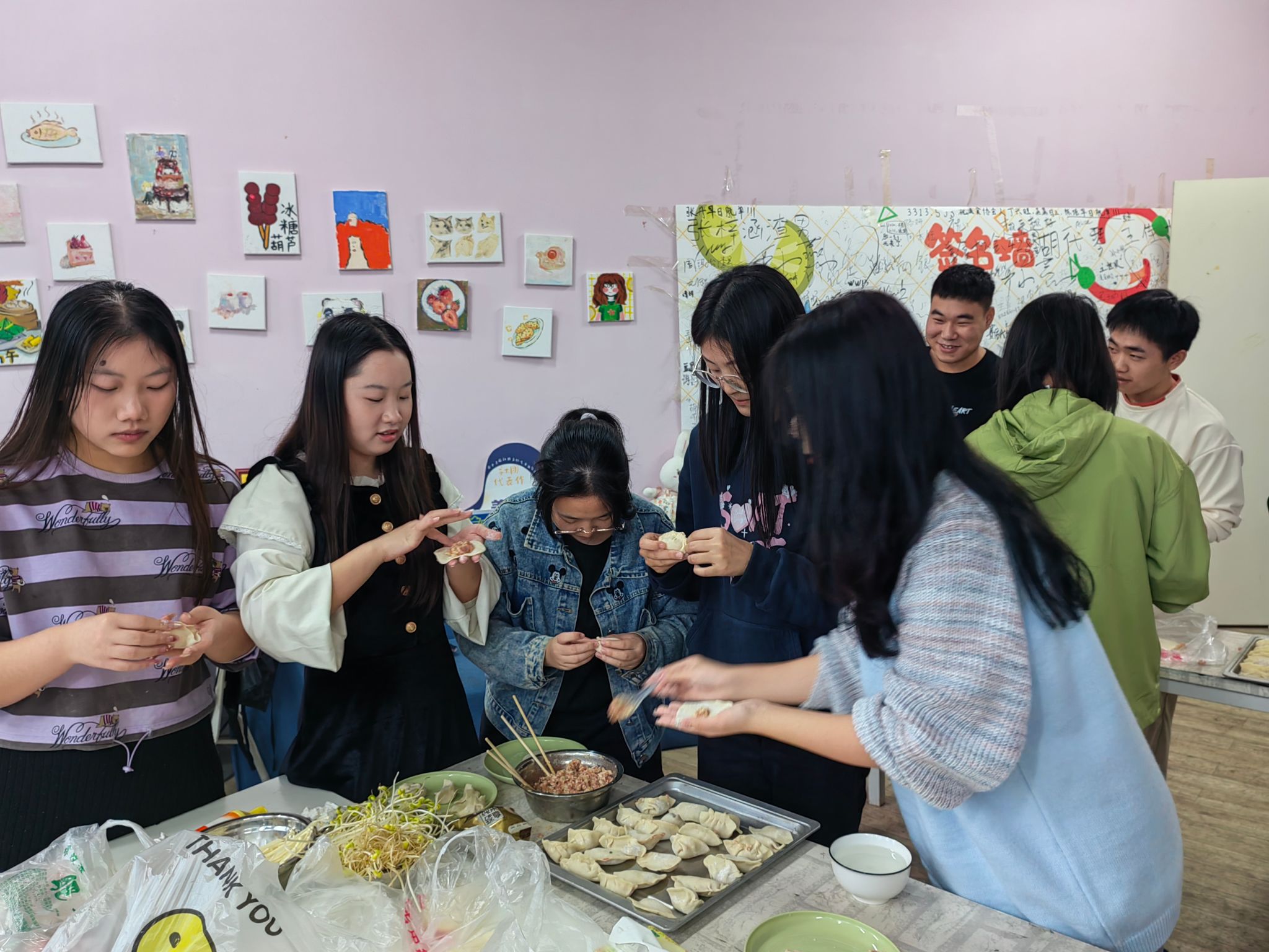 在准备晚饭的过程中,最有趣的活动当属包饺子。“要包饺子了!”此言一出,在场所有同学都来了兴致,纷纷跑去洗手台洗好手,等待制作今晚最有分量的食物。馅和皮刚上桌,大家便按捺不住,开始包起饺子。无论是老手还是小白,每个人都乐在其中,享受着创造一份美味的成就感。由于地区或经验差异,大家包的饺子各不相同,有造型标准精致的饺子,也有独创的包得像花一样的饺子。不管是哪种样子的饺子,其中都倾注着同学们的一份心意。众人拾柴火焰高,同学们很快就包完了饺子。时间转瞬即逝,晚饭的准备工作也迎来了尾声,一道道佳肴新鲜出炉。