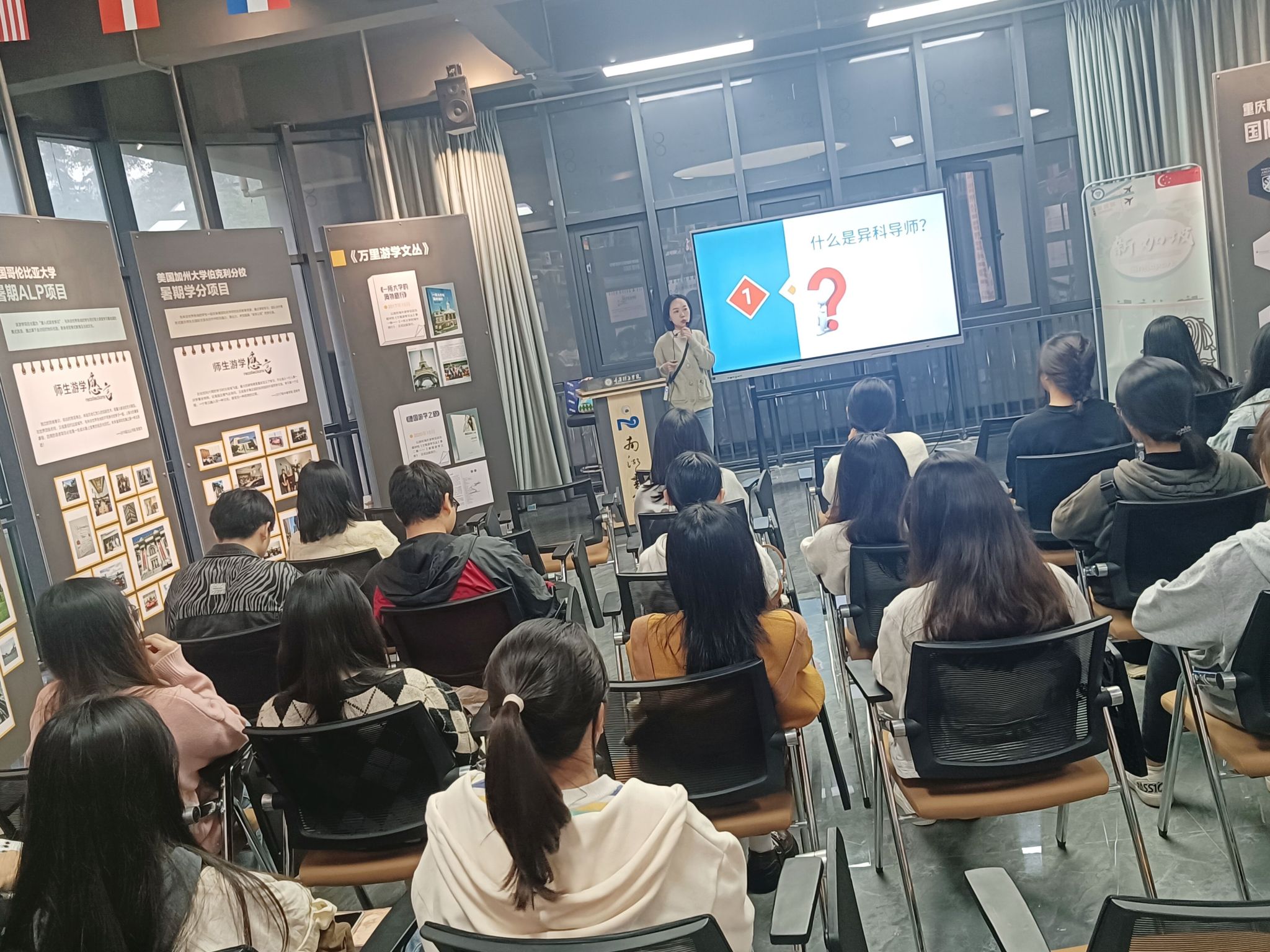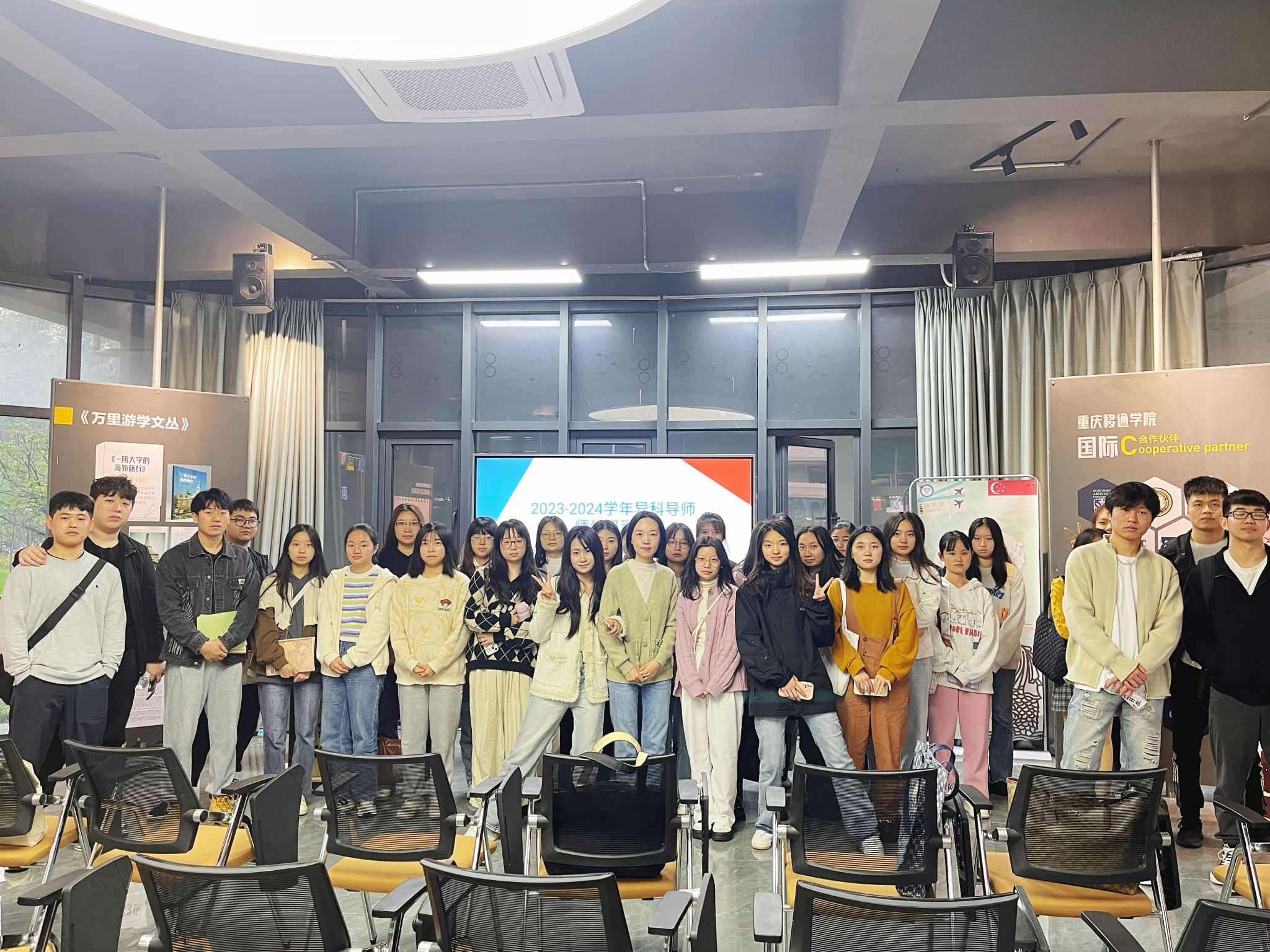 为积极落实我校全生异科导师制,2023年10月31日上午10点,异科导师熊光源与2023级财务管理专升本1班和2班的三十多位同学齐聚南湖书院国际文化展厅,开展本学年首次异科导师见面会。会上,熊光源老师首先介绍了学校开展全生异科导师活动的重要性和意义,作为一项深入推进“以学生发展为中心”教育理念的举措,异科导师活动旨在为学生提供感知、体验和参与的教育环境,全方位地培养学生的成长。
