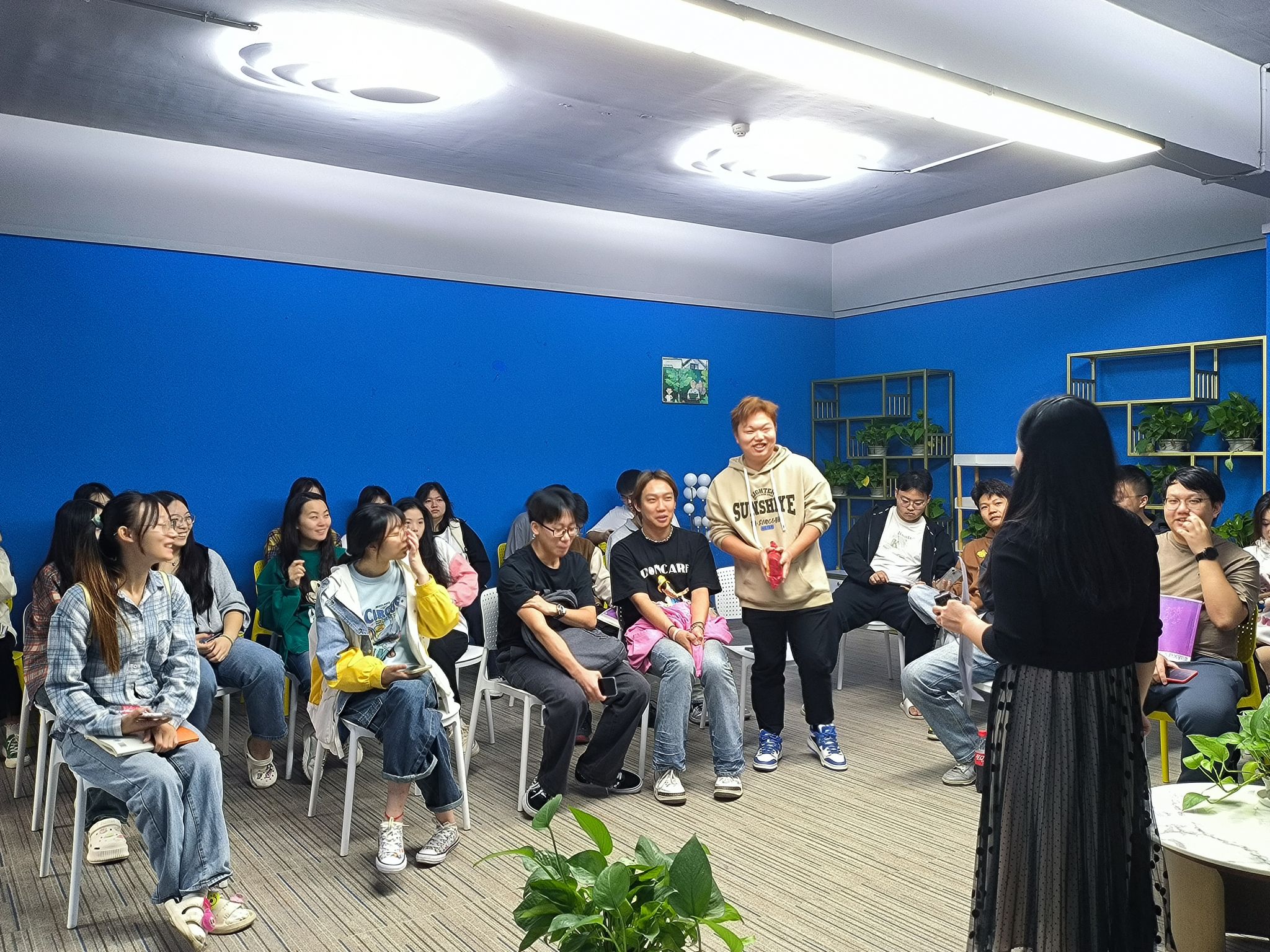 为了扎实推进全生异科导师工作,实现异科师生学科融合,刘菊异科导师小组于2023年10月23日相聚天空书院“浩瀚家文化体验室”,开展“异科引领,凝心聚力”师生集体见面交流会。见面会由微信扫码签到领零食、师生互动自我介绍,“数字炸弹”破冰游戏,学期异科活动安排,学生需求调查问卷,师生共话畅谈6个部分构成,见面会气氛轻松愉快,增进了2021级市场营销专业1、2班35名同学和刘老师的师生情感,为后续助力学生向上成长,不断增加班级凝聚力奠定了很好的基础。