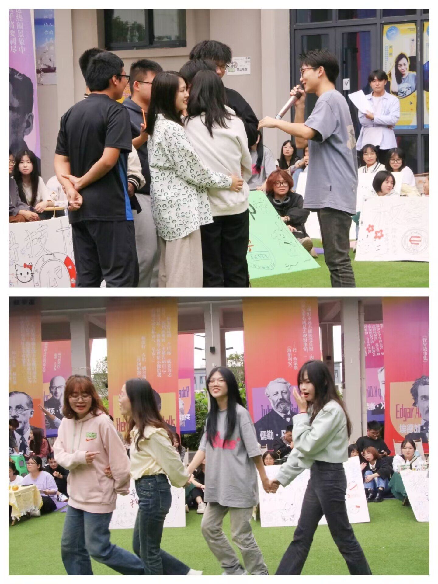 尖叫声和欢笑声环绕在草坪中,在一个个激情的节拍中,彼此手拉手欢快地小跑在草坪上,无形中大家突破了一次又一次的隔阂。每一次拥抱,每一次拼凑,让大家的距离一点点缩小,当奔向彼此的时候,我们抛弃了顾忌与陌生,融化了因陌生而造成的坚冰。大家紧紧相拥,脸上洋溢着喜悦的神情,青春的热烈肆意流淌。