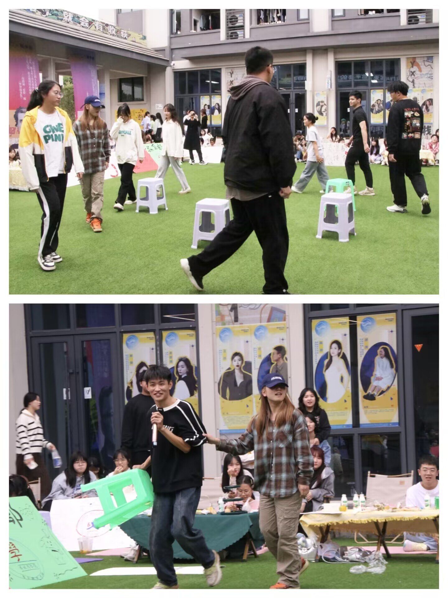 “板凳叠罗汉”环节把全场的氛围推向高潮。虽然游戏激烈,但大家彼此谦让,互相尊重,同组的同学彼此帮助,默契渐显,为小组的胜利努力赢到最后。为增加难度,曾芮主席亲上阵,加入大家的“抢凳子”游戏中去,现场欢声笑语打成一片,增加了干事们的友谊和亲密度,拉近了部长们与干事之间的距离。在抢夺的过程中,大家肆意欢笑,散发着青春的活力。
