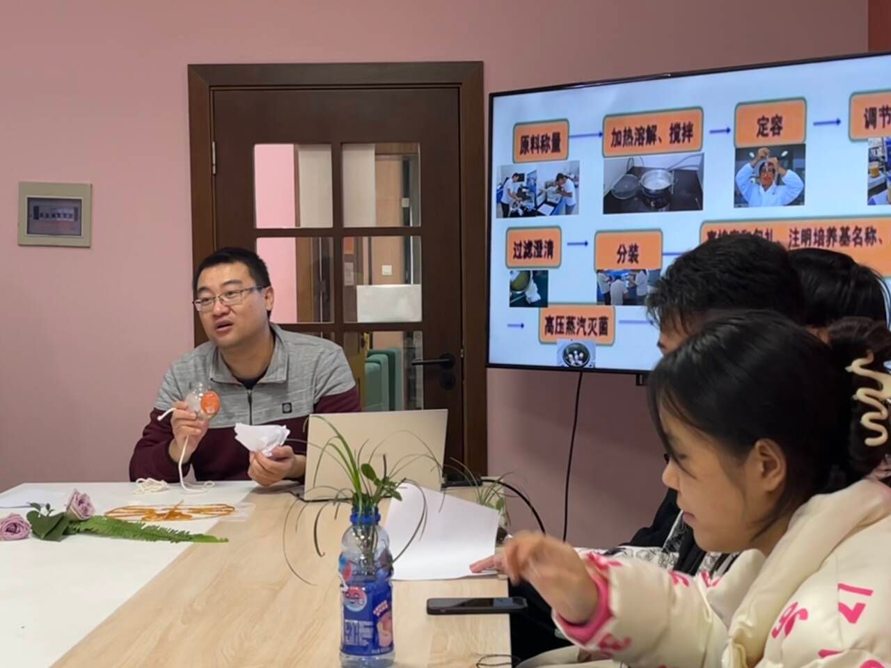 在活动上,胡老师现场演示了培养基瓶口密封的方法,进行实践教学,并让大家练习,随后进行了一场小比赛。胡志琼同学做得又快又好,得到老师与同学一致的赞扬。