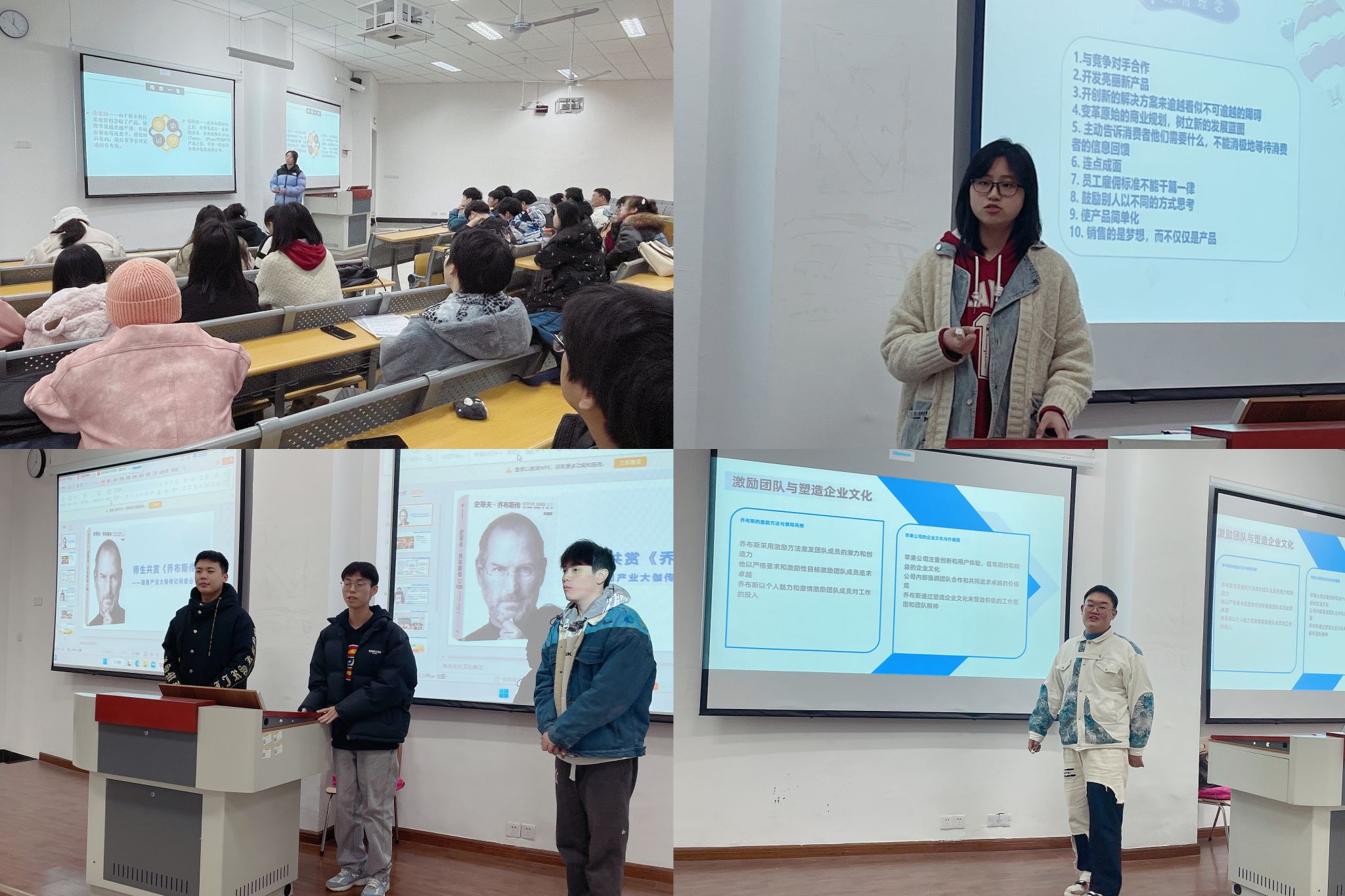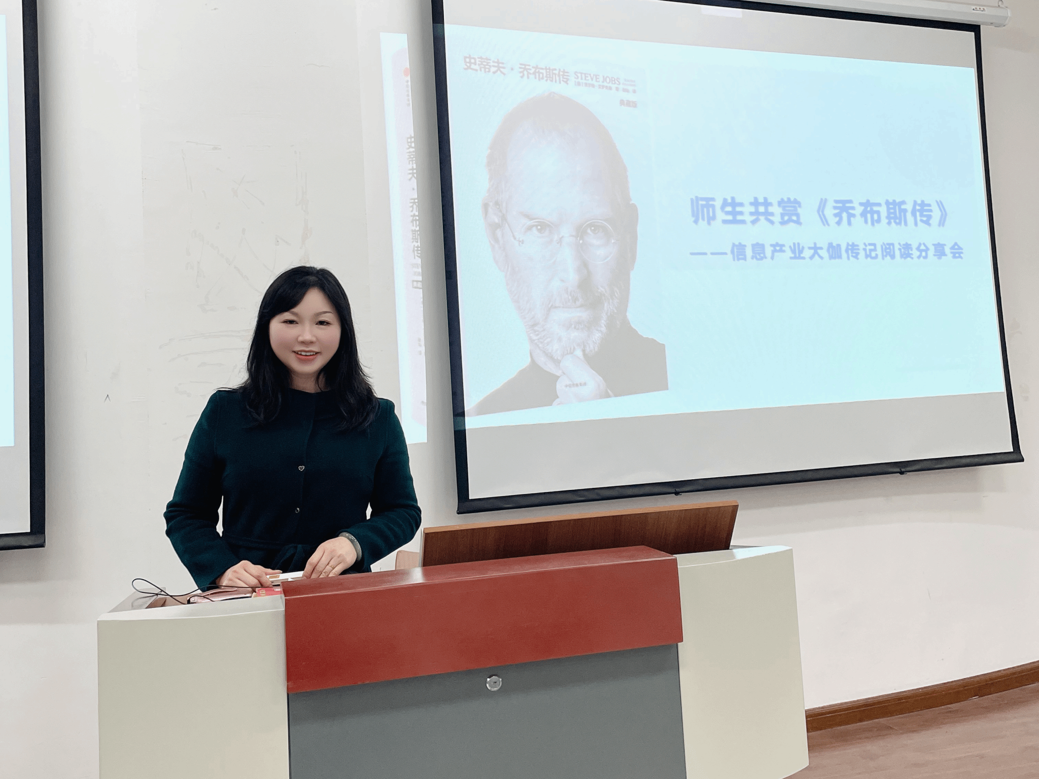 为了丰富师生课余生活,培养学生阅读兴趣,推进我校“信息产业大咖传记阅读计划”,12月13日中午外国语学院魏铃老师与来自淬炼商学院2023级市场营销24班和财务管理(专升本)1班35名同学齐聚天空105教室,开展了“师生共赏《史蒂夫·乔布斯传》——信息产业大伽传记阅读分享会”。