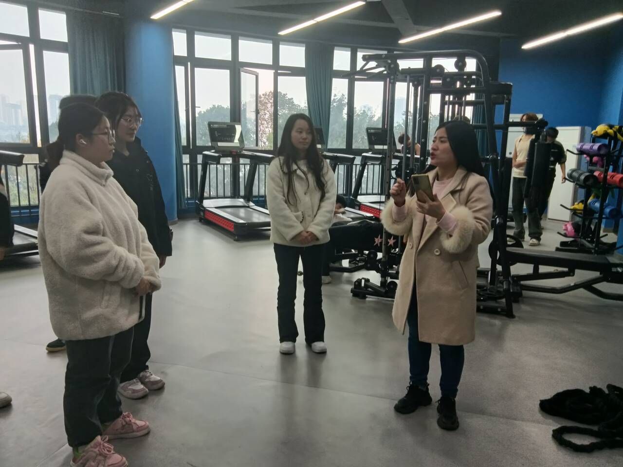 冬天到了,阴雨连绵,户外运动受到了一定限制,为了让同学们充分了解书院健身房,享受室内运动,强身健体,增强同学们的体育健康精神,刘菊导师带着学生来到天空书院教学区二楼面朝涪江的揽江厅书院健身房开展运动打卡活动。刘菊老师介绍到健身房配备有跑步机、多功能史密斯架、战绳、跳绳、炮筒、实心球、哑铃等健身器材,可供学生日常健身锻炼使用,学生日常使用无需预约,到达健身房后登记使用,使用完毕之后将运动器械整理好放回原处即可。同学们纷纷拿起了自己喜欢的运动器材,积极践行燃烧你的卡路里,一起趣健身。
