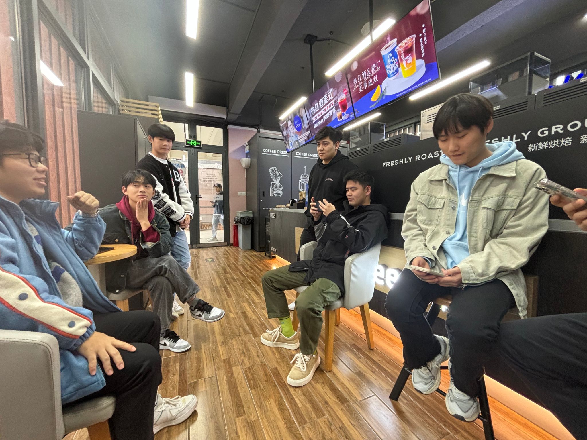 在财管5班袁卫国同学的组织倡议下,朱惠东异科导师小组中男生成员主动提议与老师一起组织策划异科导师组集体活动,这次地点选在了学校的咖啡厅。同学们三三两两地围坐在老师周围,师生之间从相识到相知,再到最后的无话不谈,我们建立起了亦师亦友亦家人、平等互助共成长的新型师生关系,在互帮互助、融洽和谐的氛围中,见证着彼此的成长。