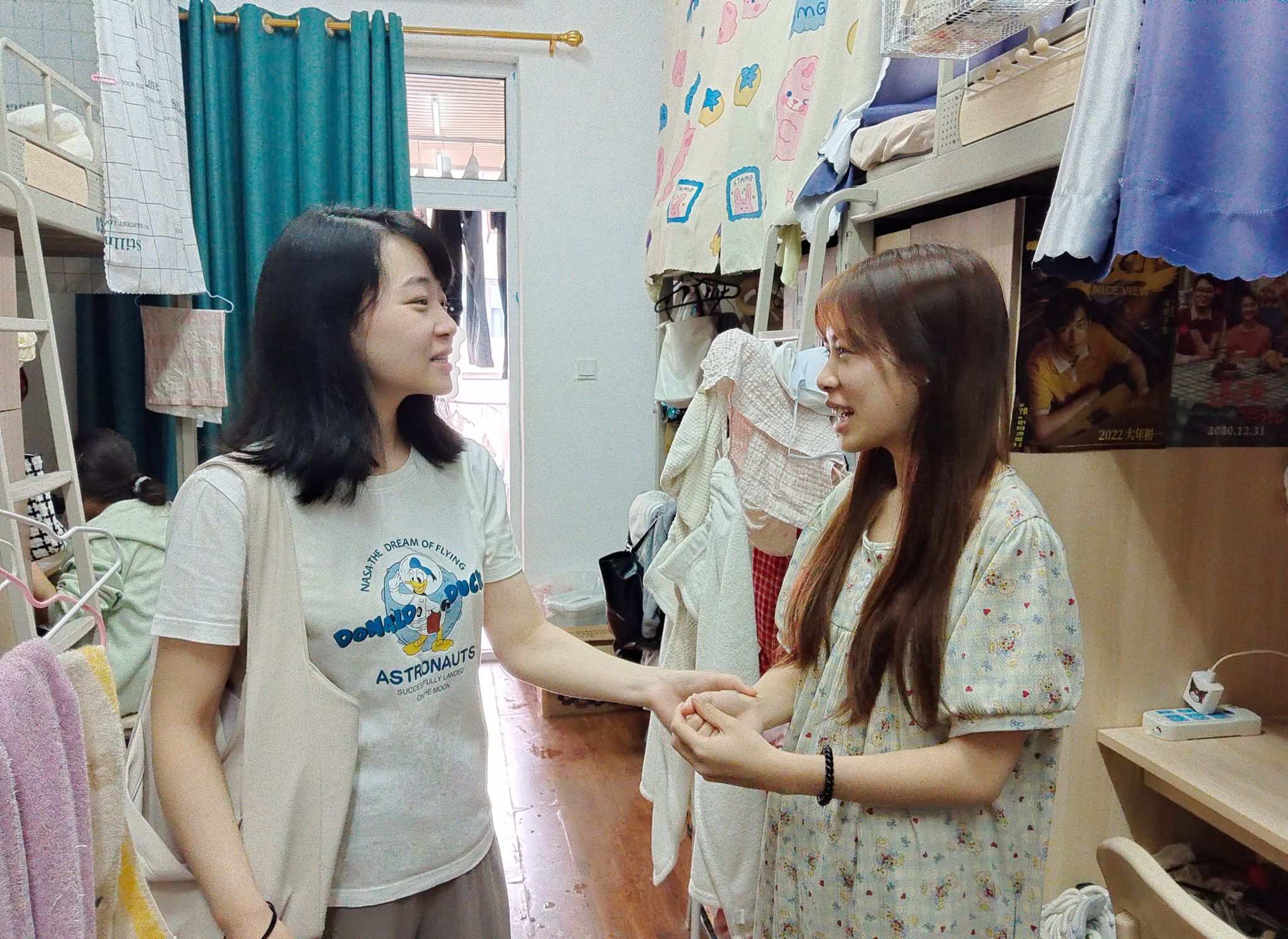 为了积极贯彻“以学生发展为中心”的教育理念,充分发挥全生异科导师“知心朋友、成长伙伴、人生导师”的育人角色,更好地了解学生在宿舍的生活情况,加强师生之间的交流,解决学生在生活中遇到的难题。5月7日下午,2022级工商管理类18班、19班异科导师刘丹走进天空书院开展了宿舍走访活动。