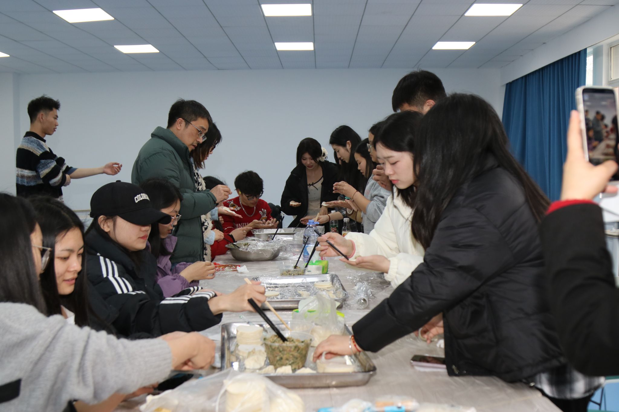 阳春三月正值春光明媚、万物复苏的时节,新学期伊始,在韩老师、税老师的倡导下,在班长李金鑫同学、童皓等同学的积极策划组织下,活动准时在12点开始。在这次活动中,28位师生纷纷亲手参与到饺子的制作中。他们积极配合,分工合作,嫣然一支默契的队伍。这不仅是一次技能的展示,更是一次班级凝聚力的展现。通过手工饺的制作,同学们之间的距离拉近了,彼此之间的情感增进了。