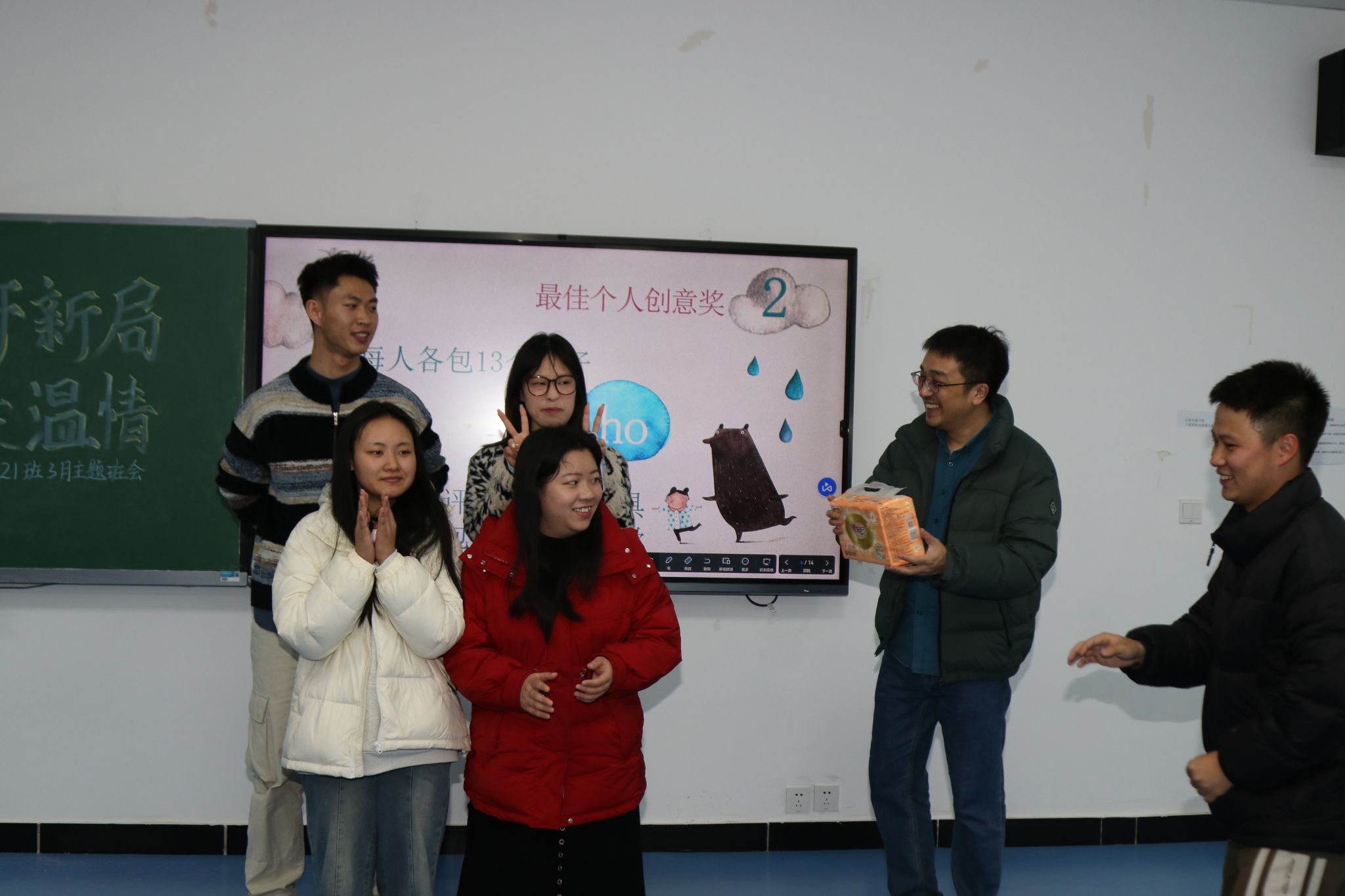 为了进一步增强班级凝聚力、加深师生之间的情感交流,2024年3月13日中午12时,异科导师税青,班级辅导员老师韩舒臣,与2023级市场营销专升本21班的全体26位同学,在 5201教室相聚一堂,共同举办了一场别开生面的活动:乘势扬帆开新局,春日转“饺”是温情——“集体生日会”特别班会活动。