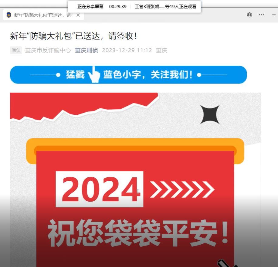 新学期到来,为了进一步加强同学们的反诈意识,普及防骗知识,筑牢新型诈骗防火墙,积极响应我校反诈宣传工作,3月8日晚上,异科导师胡宗容通过QQ群线上开展了反诈专题会议。会议由异科导师胡宗容老师主持,2022级工商管理2、3班同学参加。