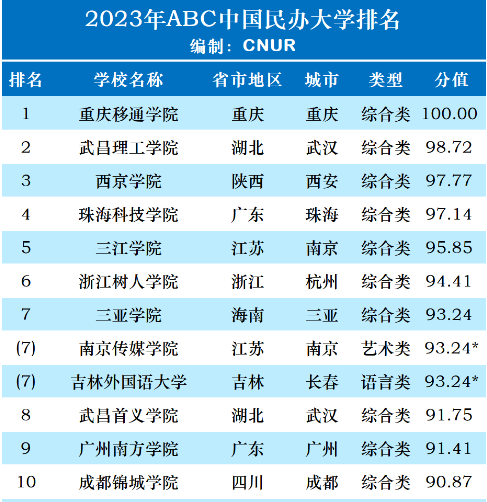 4月13日,由ABC咨询机构编制的2023年ABC中国民办大学排名权威发布,我校以总分第一位居榜首,成功蝉联第一!