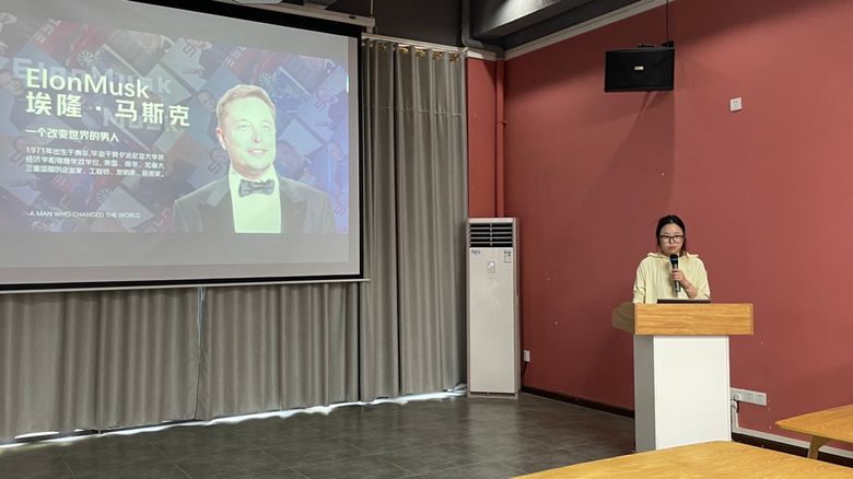 学生们被分为6个小组,每组围绕《硅谷钢铁侠》一书的不同章节进行深度解读与心得分享。从马斯克的童年梦想谈到SpaceX的火星计划,从特斯拉电动汽车的革命到SolarCity的绿色能源愿景,学生们通过PPT展示,生动展现了马斯克如何用科技改变世界的故事,深刻剖析了他的决策逻辑与领导风格。
