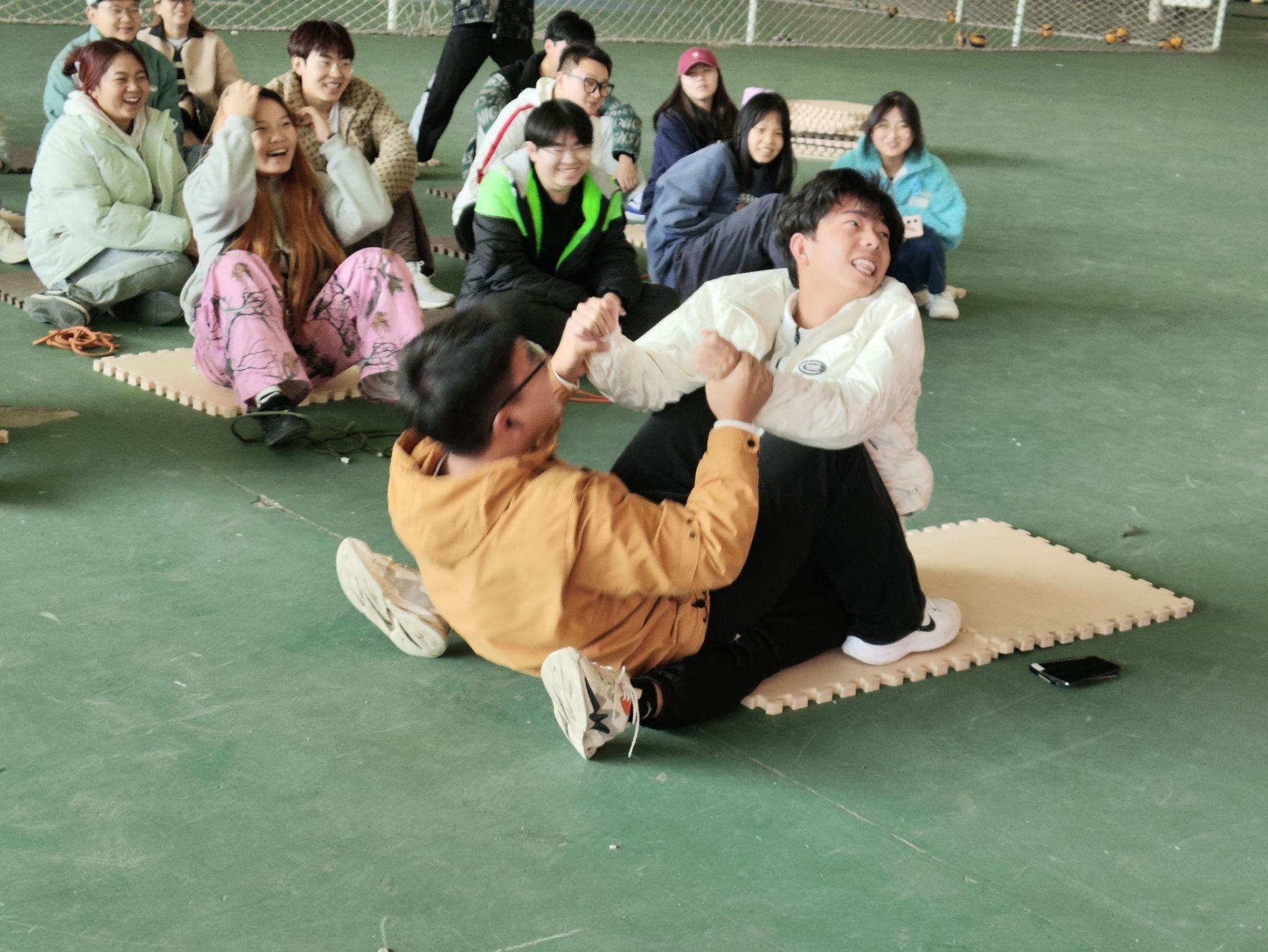 紧接着,有着丰富救援经验的竞技体育中心的田威教练登场,为同学们现场演示常见的火灾逃生方式。他特别强调了逃生时绳索的正确运用,并现场详细演示了“打水结”和“渔人结”的打法,在教练的鼓励和指导下,同学们亲自上手尝试,陆续掌握了这两种绳结的技巧精髓。随后,竞技体育中心的余青河教练贴心的为同学们传授了防身术。余教练从基本的防身姿势和步伐开始,逐步深入到各种实用的攻防技巧,如挣脱束缚、躲避攻击等。在余教练的耐心指导和鼓励下,同学们的学习热情高涨,纷纷踊跃参与模仿,现场的学习氛围热烈而浓厚。