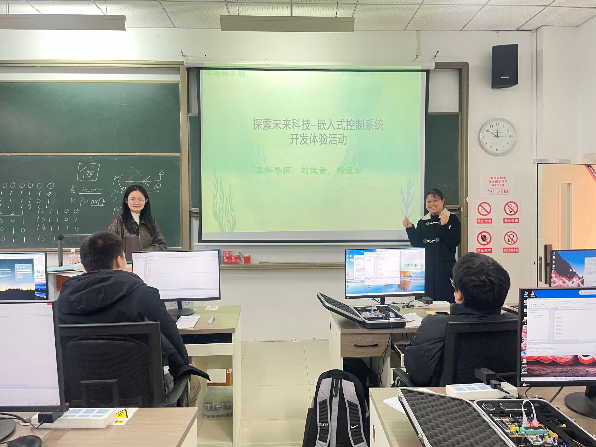 为丰富同学们的课余文化生活,增强异科导师与学生之间的沟通交流,淬炼商学院异科导师刘佳音老师与杨谨如老师共携手,于11月22日下午在第三实验楼S3305嵌入式控制系统实验室进行“探索未来科技,嵌入式控制系统开发体验活动”为主题的学科竞赛相关体验活动。