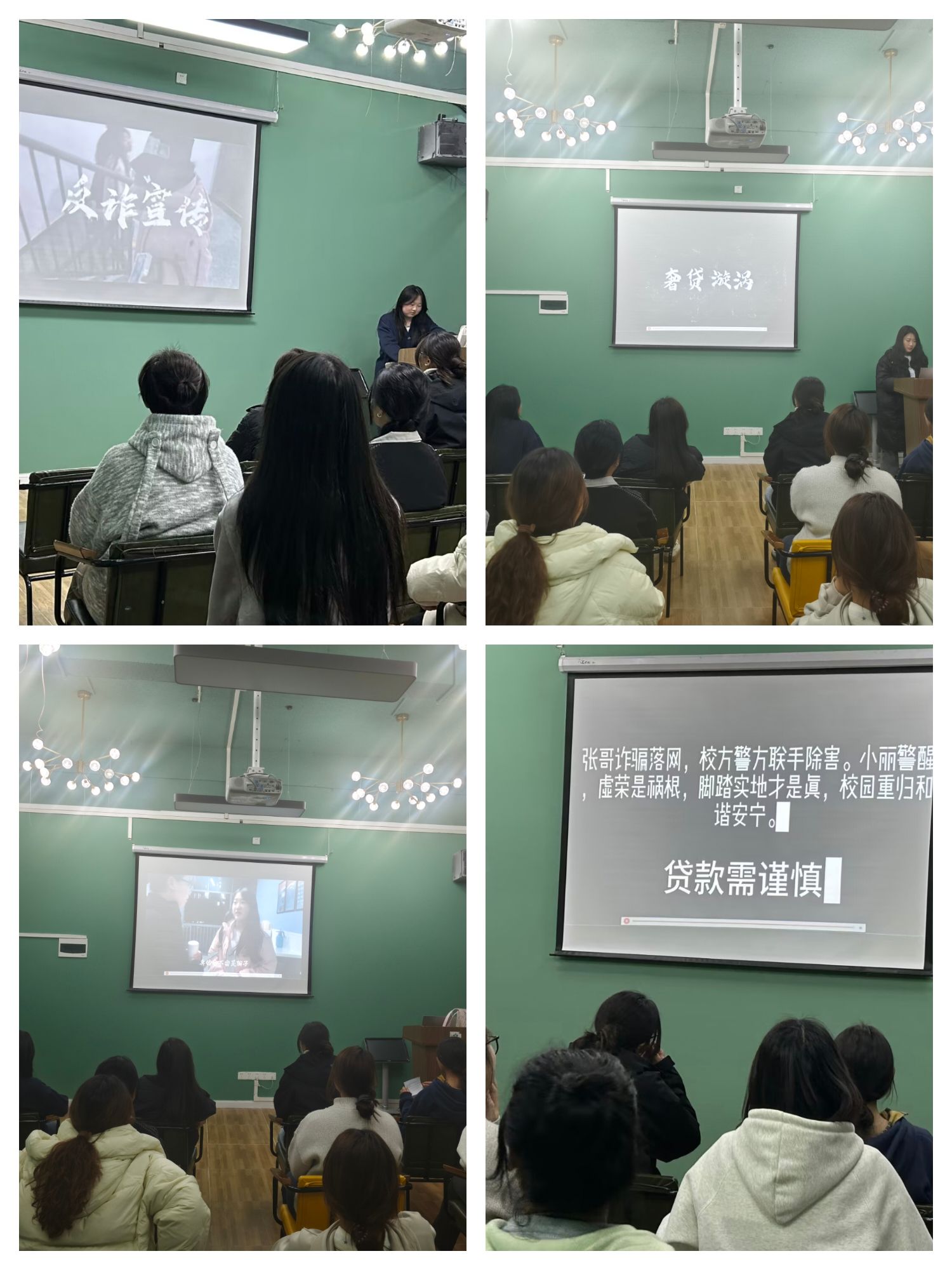 活动以播放同学自己录制的反诈短视频生动的引入防诈、反诈主题,视频以真实的事件为基石,情节高度还原现实,主人公“小丽”因看见别人用奢侈品而经不住“张哥”的诱惑,掉进了“张哥”的贷款陷阱。同学们都因惊人的诈骗金额和受害者无助的眼神而眉头紧锁,纷纷发表自己对短片中的诈骗细节以及防范要点的感想。