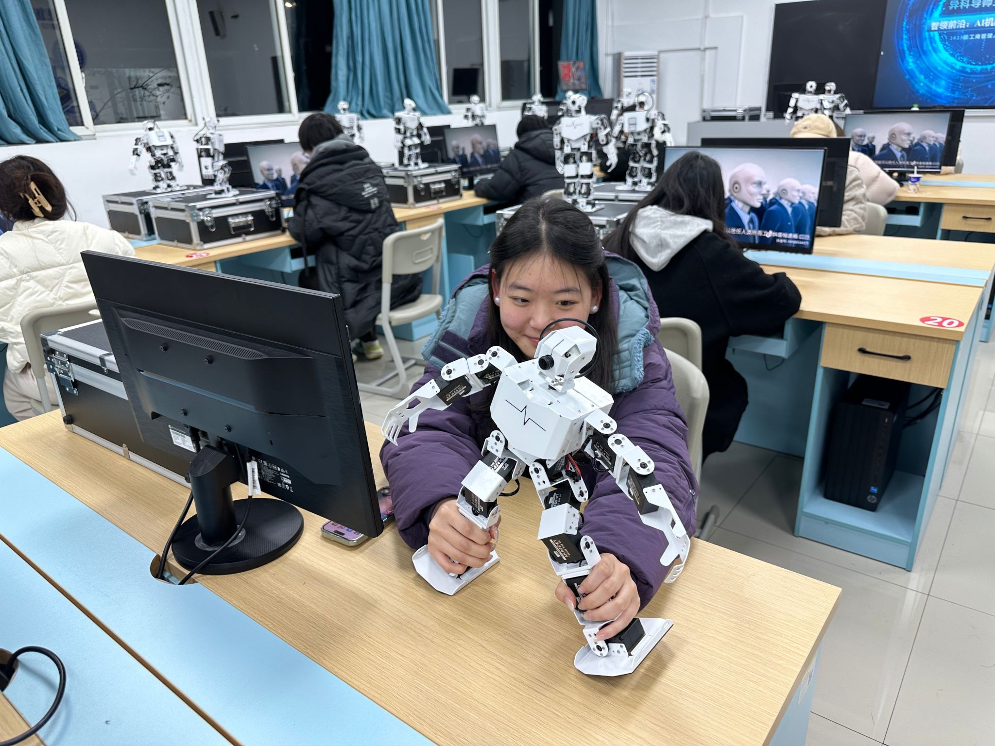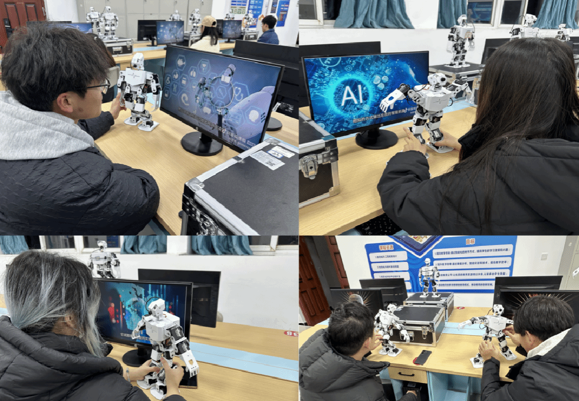 在了解过理论知识与案例展示后,便是激动人心的实践体验环节。同学们迫不及待地投身其中,亲手操控机器人,开启与科技的“亲密对话”。通过手机APP控制,看着机器人精准响应指令,流畅完成各类动作,大家领略到人工智能的魅力。操作过程中,惊叹声、欢笑声交织,同学们沉浸在科技带来的奇妙体验中,对机器人的智能特性有了更为直观、深刻的感悟。