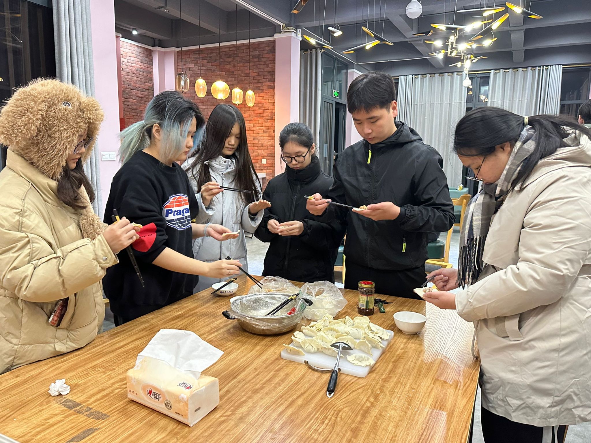 12月21日,当冬至的脚步悄然来临,凛冽的寒风吹拂着大地,然而,这丝丝寒意却丝毫无法吹散同学们心中那团炽热的热情之火。在这个极具特殊意义的传统节日里,异科导师沈五一满怀热忱地引领着饭搭子・美食小组成员们,精心筹备并举办了一场别开生面、温馨满溢的“情暖冬至,饺香四溢”包饺子活动。