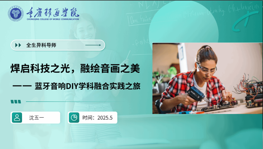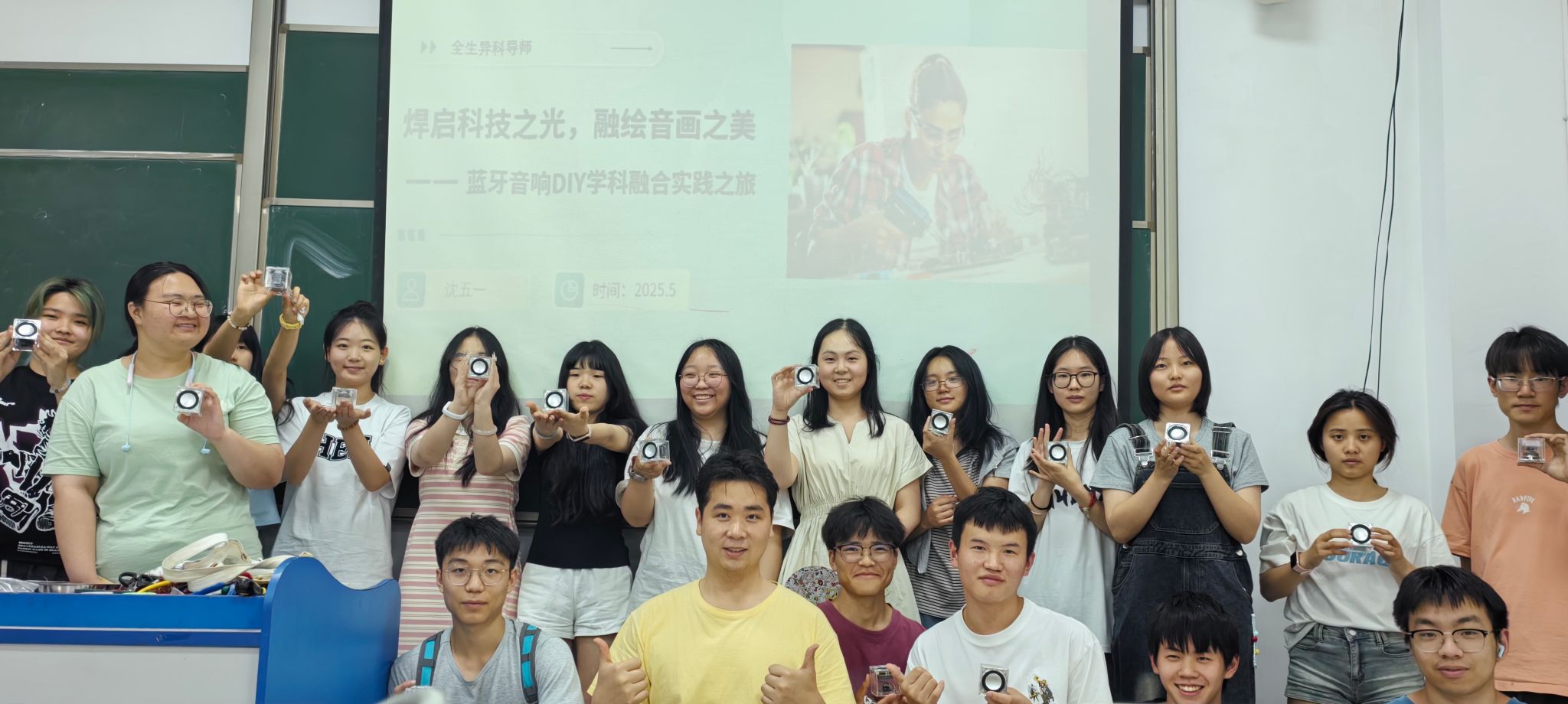 为打破学科壁垒,培养学生跨学科综合素养,5月16日,一场别开生面的 “焊启科技之光,融绘音画之美” 蓝牙音响 DIY 学科融合实践活动火热开展。异科导师沈五一带领工商管理人力专业的文科同学们走进理工科实验室,开启了一段充满趣味与挑战的科技实践之旅。
