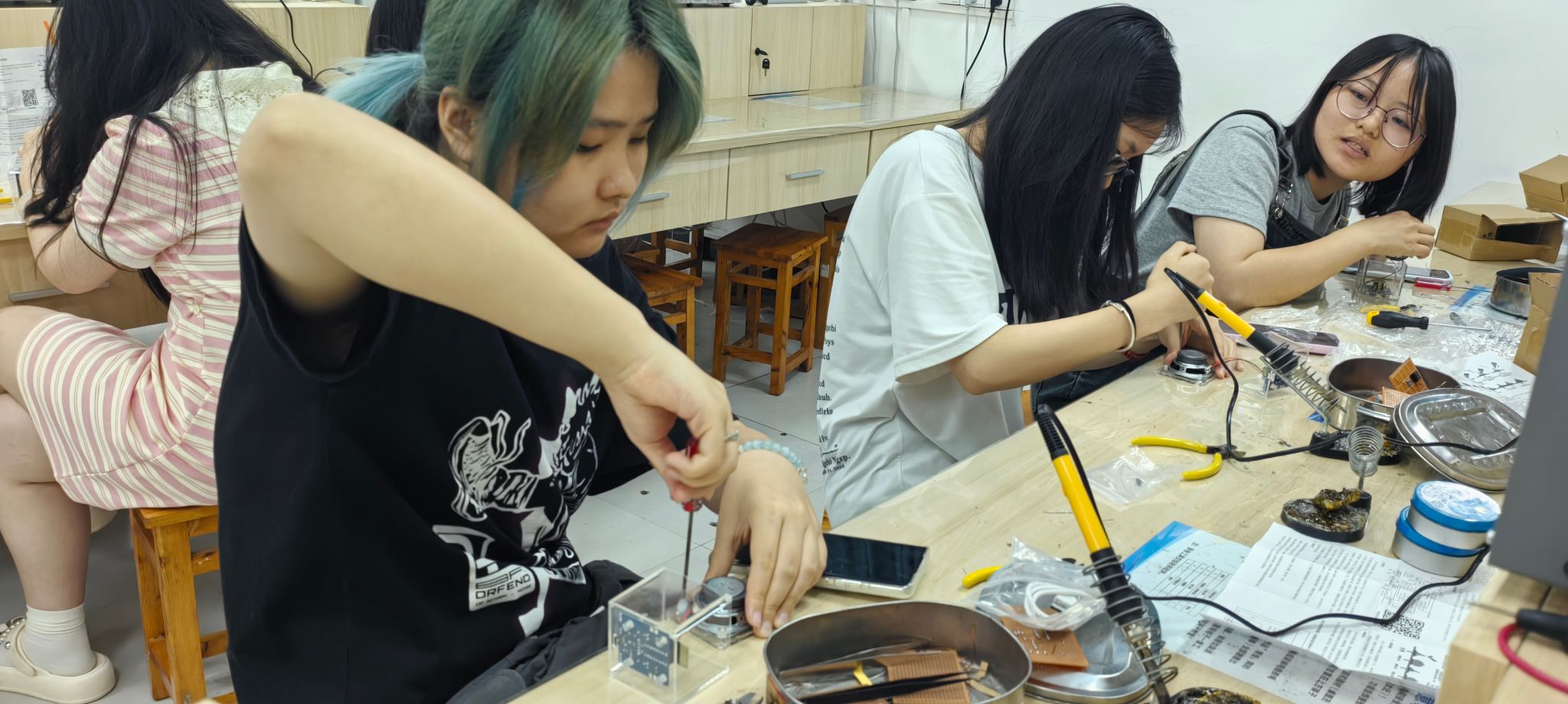 经过一番努力,同学们终于完成了蓝牙音响的组装。当打开电源,美妙的音乐从自己亲手制作的音响中流淌而出时,实验室里爆发出哇声一片。同学们虽操作生疏、失误不断,却始终坚持。他们求助时对知识的渴望,以及从手忙脚乱到熟练操作的蜕变,充分展现出探索新领域的热情。当学生兴奋展示焊接成果时,那份成就感也深深感染了我。