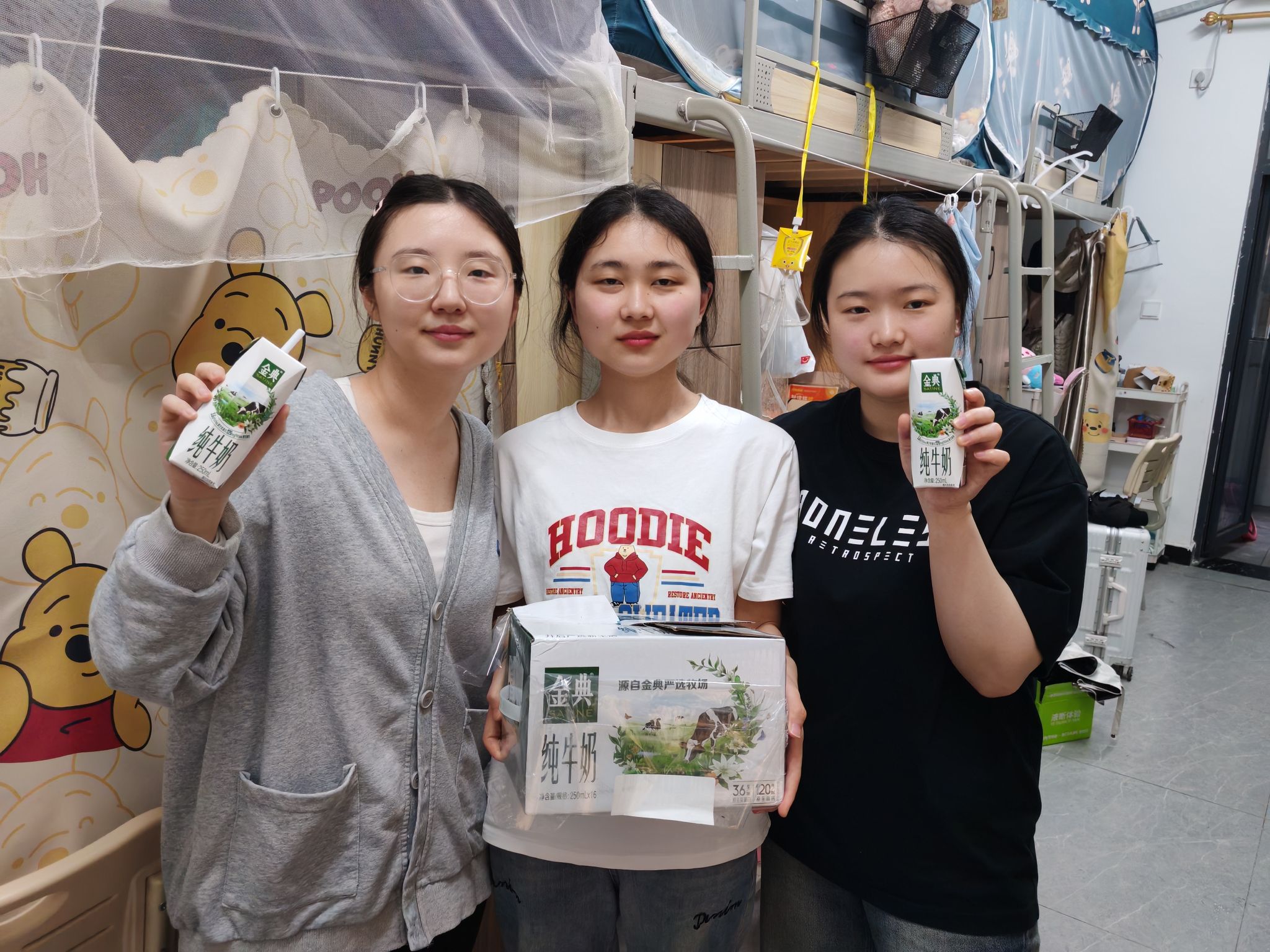 为了缓解同学们的紧张情绪,黄倩老师还贴心地为每个寝室准备了一箱纯牛奶。这份小小的礼物,承载着黄倩老师对毕业生们的关爱与祝福,希望她们在忙碌的毕业季能够补充营养,放松心态,以乐观积极的态度迎接答辩。