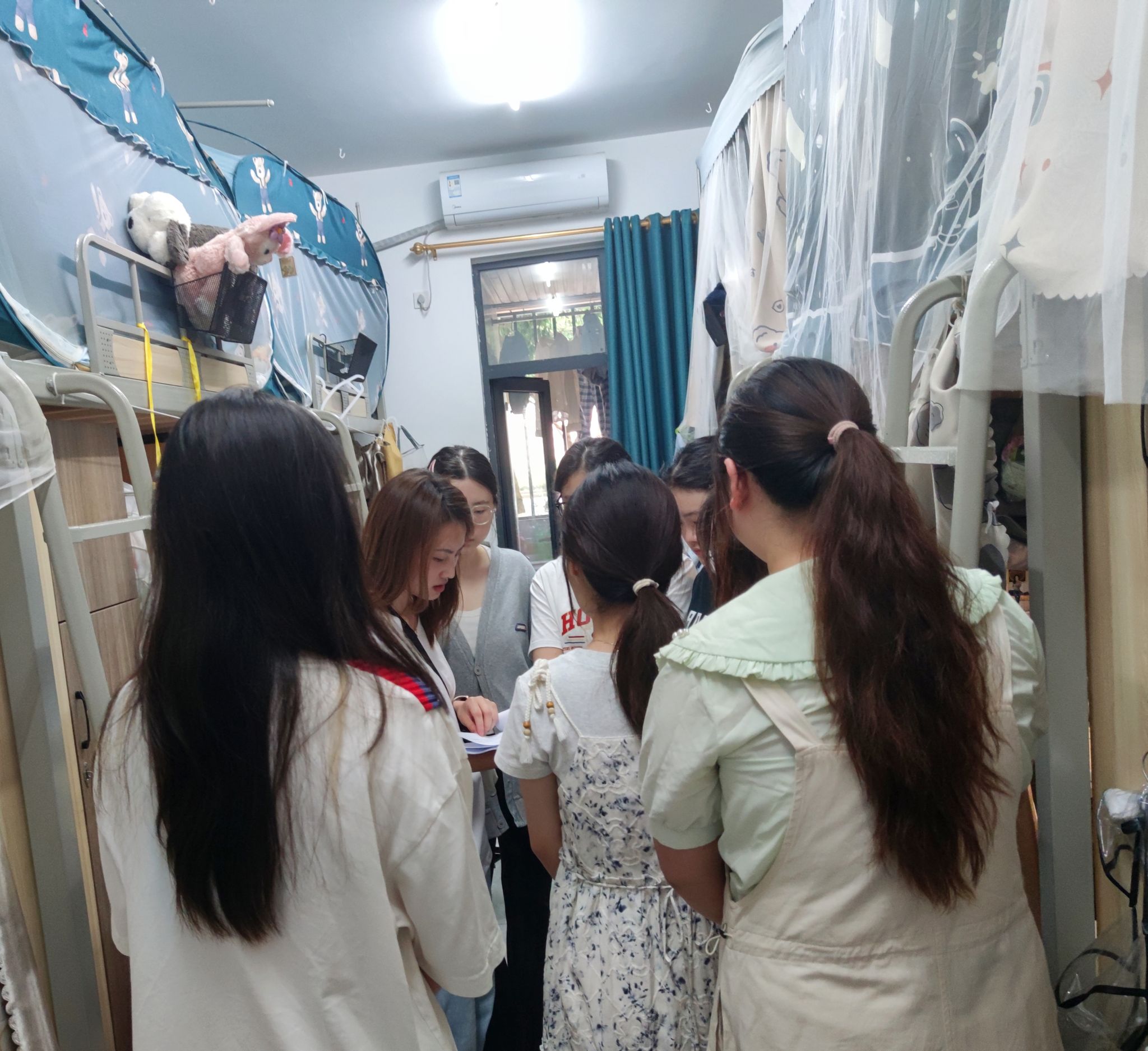 面对同学们就业、论文撰写、答辩等诸多问题,为了切实了解她们的需求,给予及时的帮助,黄倩老师提前开展了细致的筹备工作,活动前对学生查寝人数和时间进行了深入调研,通过社群与每个寝室成员建立紧密联系,确保活动能够精准对接同学们的需求,让关怀真正落到实处。
