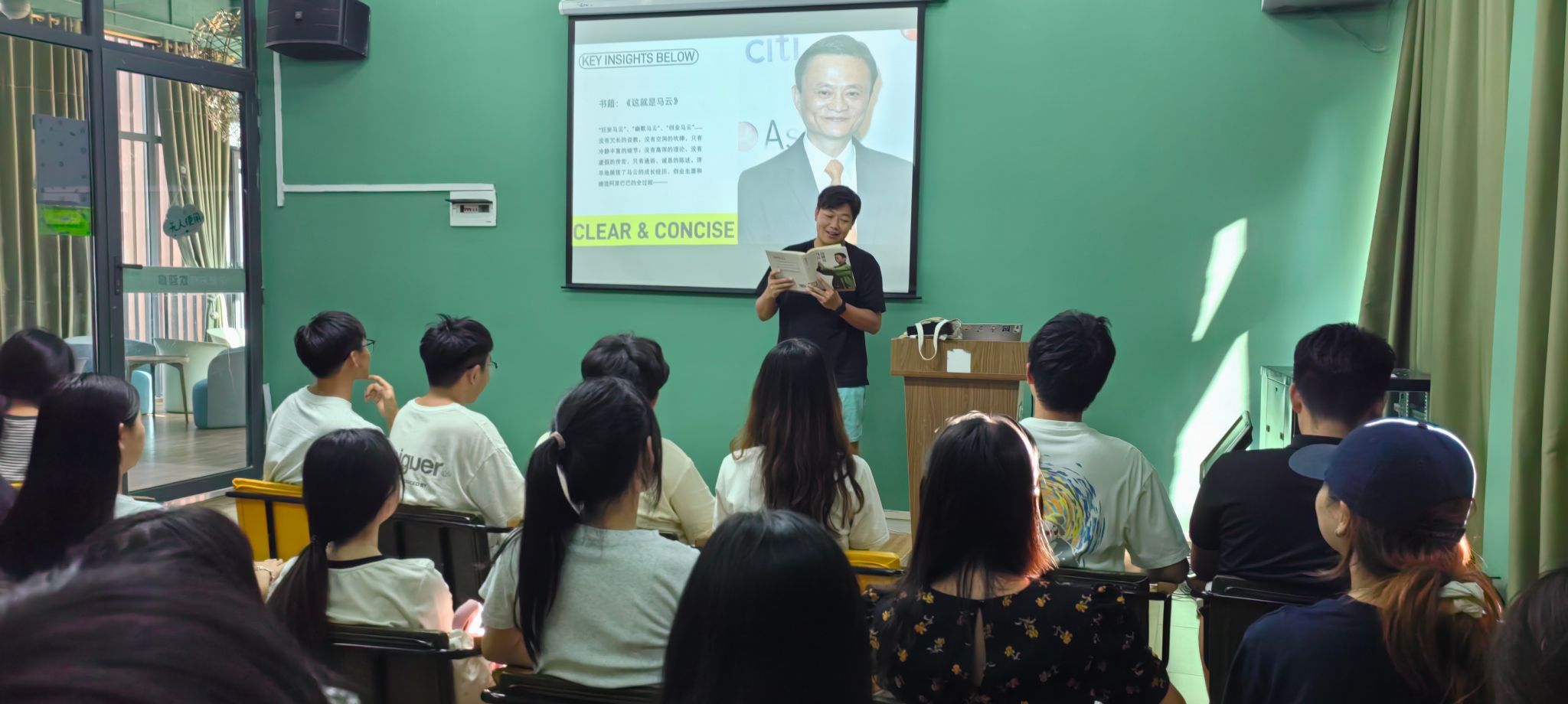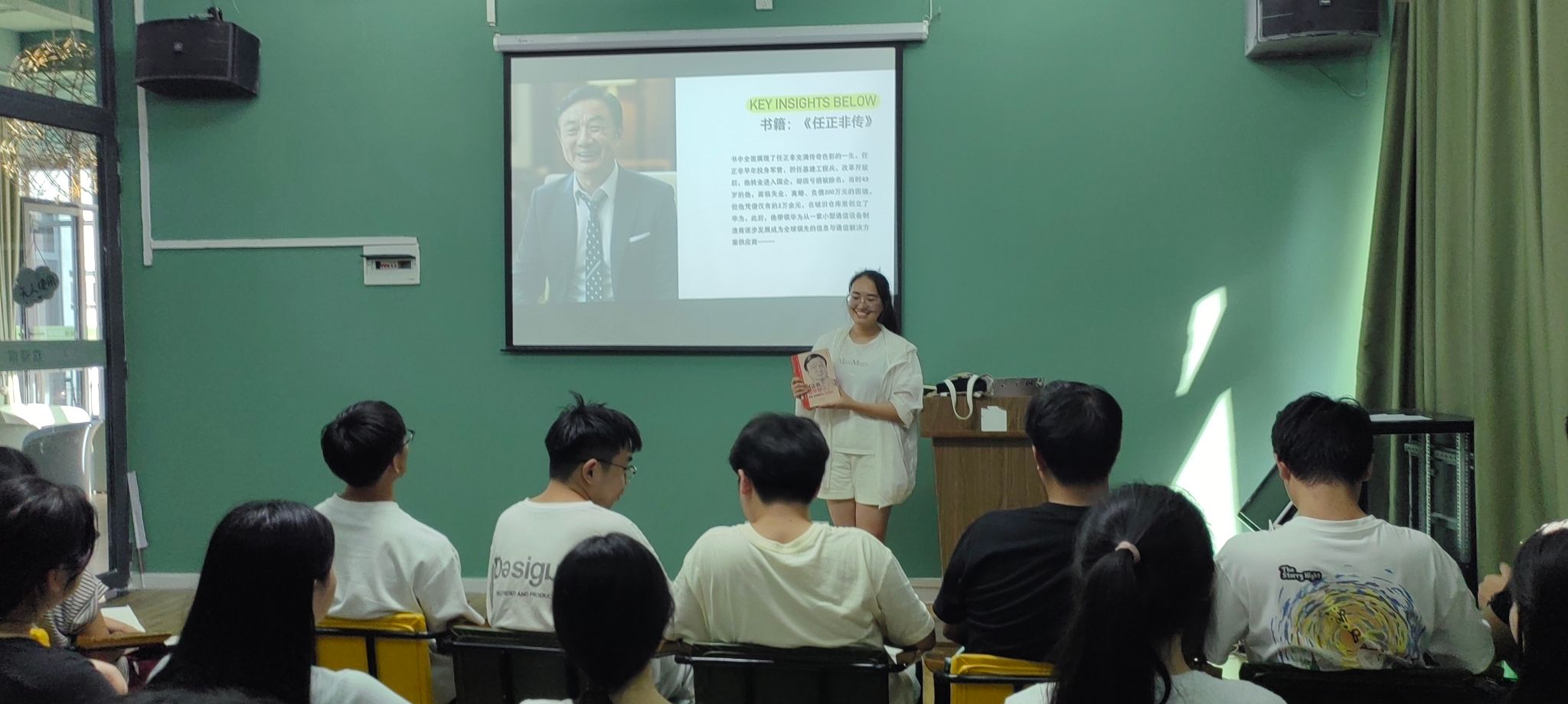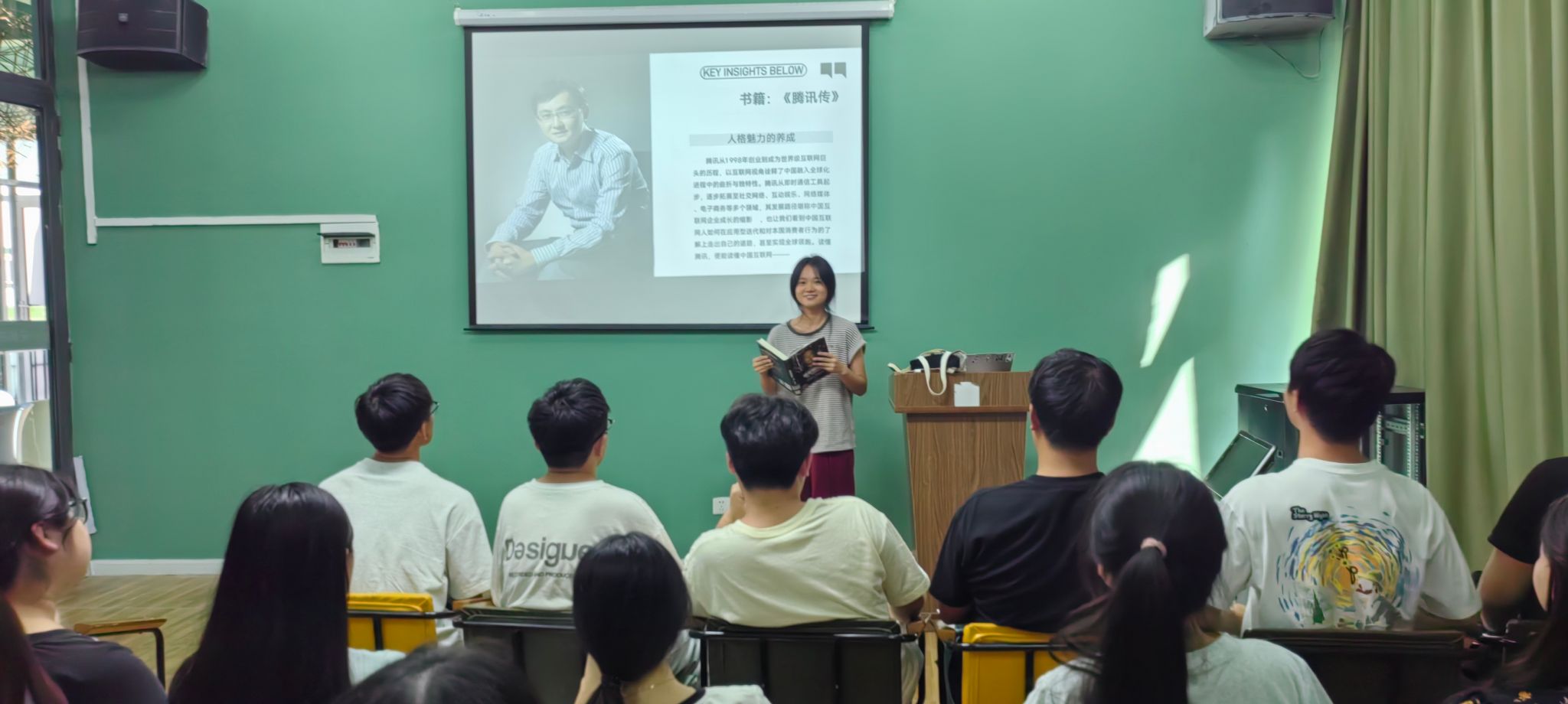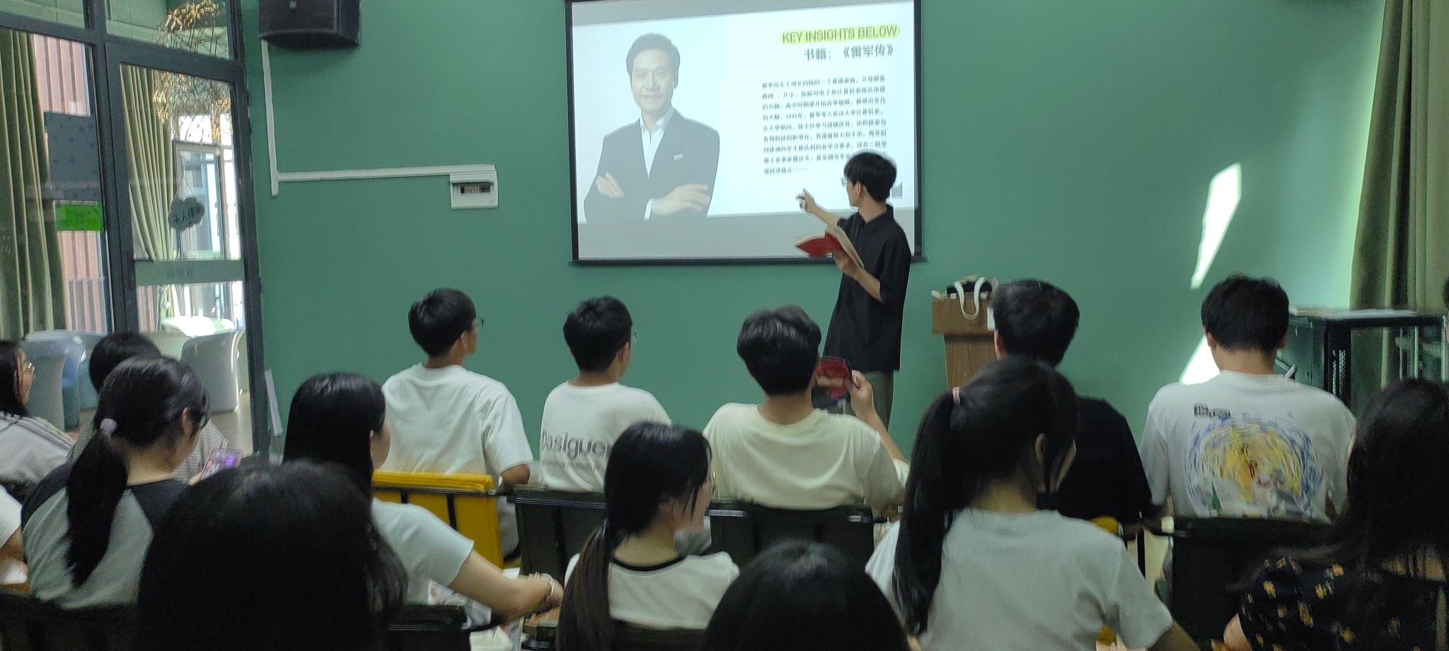学习小组代表分享环节将活动推向高潮。各小组推选的代表走上讲台,结合阅读过程中的感悟与思考,分享大咖书籍带来的启迪。吴世宇同学以《雷军传》为例,详细分析了雷军如何带领小米在激烈的手机市场竞争中突围,从产品创新、营销策略等跨学科角度探讨企业成功的关键要素。