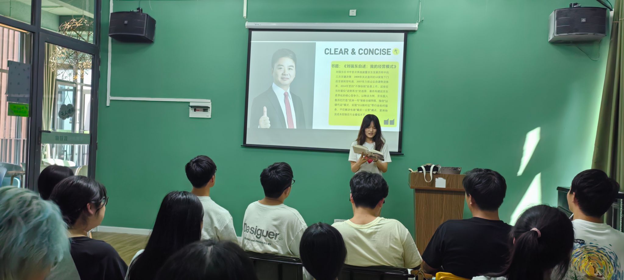 朱星雨围绕《腾讯传》,分享了腾讯在互联网浪潮中不断迭代、发展壮大的历程,探讨了团队协作和持续创新对个人与集体发展的重要性;白子涵以《刘强东自述》入手,畅谈刘强东从创业初期的艰辛到京东成为电商巨头的奋斗故事,从中感悟到坚韧不拔的毅力和敏锐的商业洞察力对实现人生目标的意义。