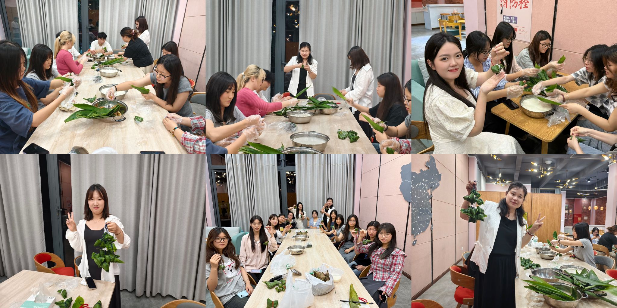 随后,师生们分组协作,粽香伴着笑声,一场别开生面的手工粽派对开始了,从折粽叶、填馅料到缠线捆扎,互相学习、默契配合。导师们则穿梭于各组之间,一边指导手法,一边与同学们畅谈学业规划、校园生活与恋爱趣事。粽叶的清香与糯米的甜香交织中,师生们不仅完成了形态各异的粽子作品——三角粽、四角粽、馒头粽,更在轻松的氛围中分享了期末复习方法、时间管理心得,以及对未来职业发展的思考。导师们结合自身经验给予建议,传递了亦师亦友的关怀。