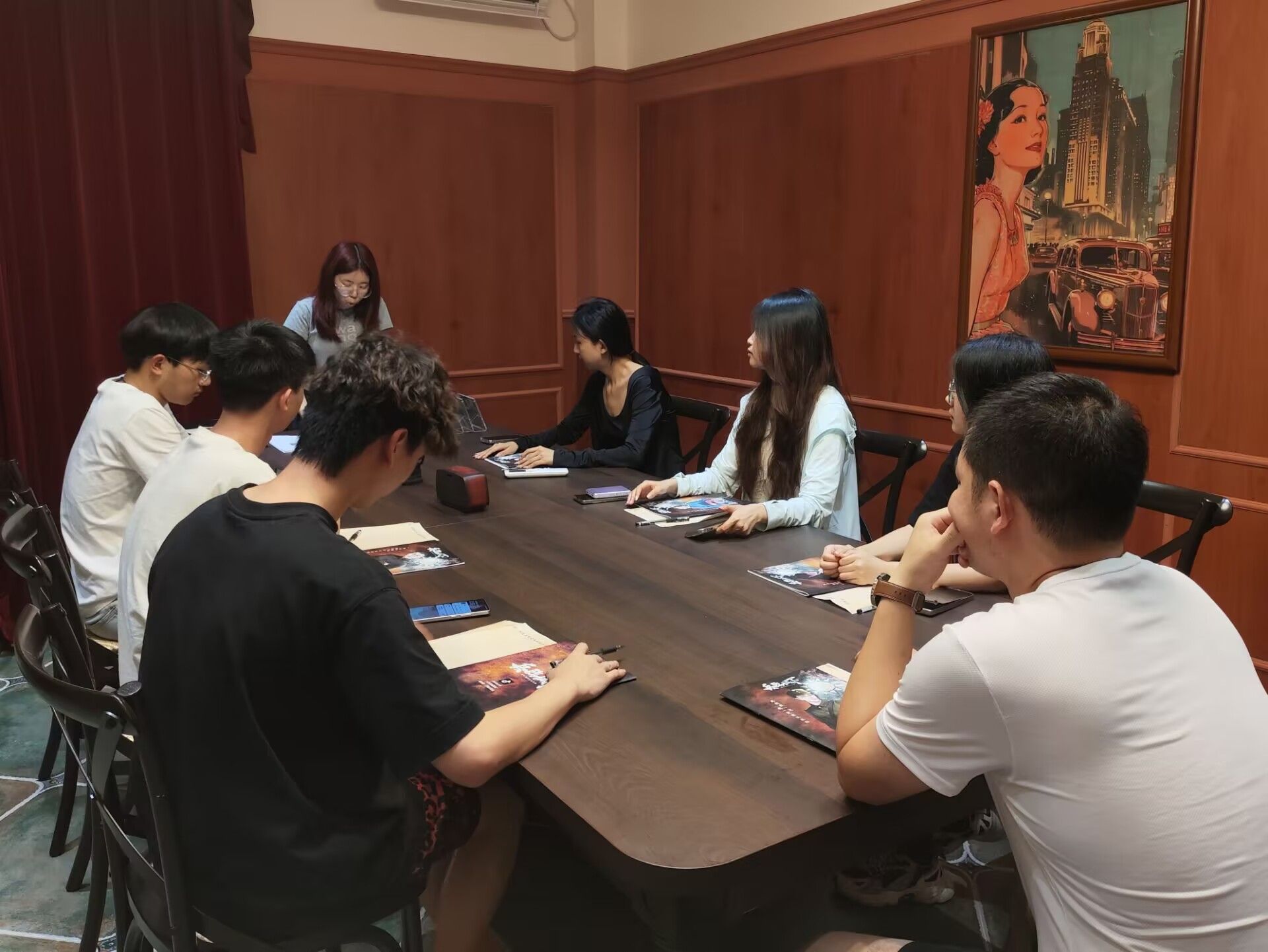 随后,学生分组进入不同主题房间,开启沉浸式剧本杀之旅。在剧本中,学生们化身地下党员、进步青年,通过情报传递、暗号破解等任务,切身感受革命先辈面临的艰难抉择与崇高信仰。活动中,李潇潇导师全程参与,与学生共同推理、协作,不仅在游戏中拉近了师生距离,更以言传身教的方式,引导学生思考红色精神的当代价值。