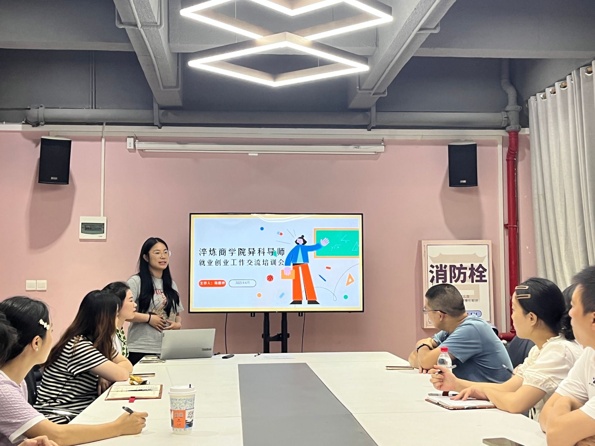 为深入推进双院协同育人机制,精准服务2026届毕业生就业创业工作,淬炼商学院于2025年6月20日下午在别都书院多功能研讨室成功举办大三年级异科导师-辅导员就业创业专题培训交流会。会议由双院融合专项老师陈露桦主持,学院就业创业办公室主任杨伦芳、2022级普本及2024级专升本异科导师与辅导员代表易华琴、蔡冰霜和唐银桧共同参会,凝聚育人合力推动就业工作有序开展。