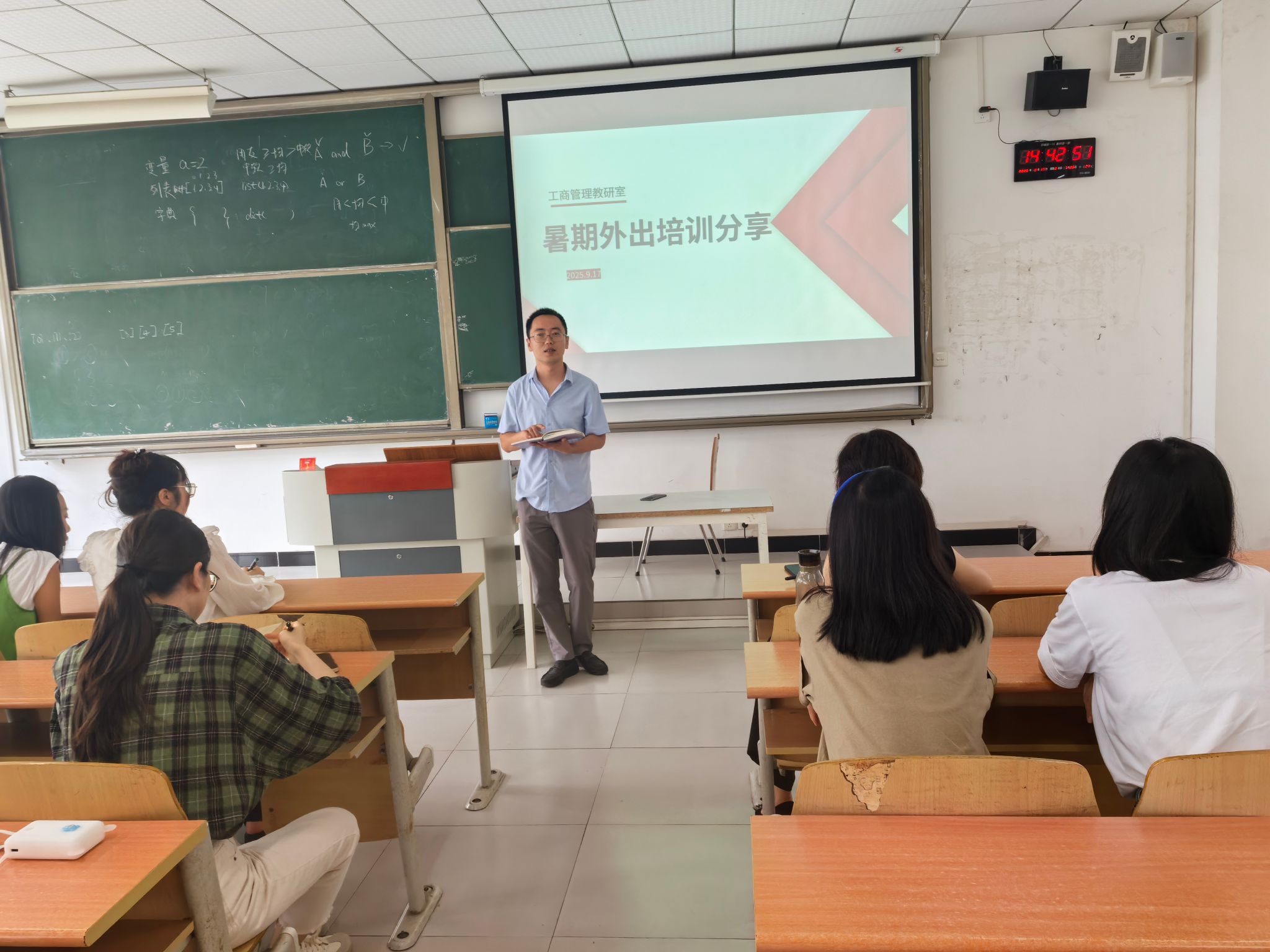 为深化教育教学改革、推动教师专业能力提升,9月17日下午14点,工商管理教研室组织召开暑期高校教师外出培训经验分享交流会。本次活动聚焦“跨学科融合、智慧教学创新、新教师赋能”三大主题,旨在通过教师间的经验互通与思想碰撞,将前沿教育理念转化为教学实践动能,为新学期课程建设注入新活力。