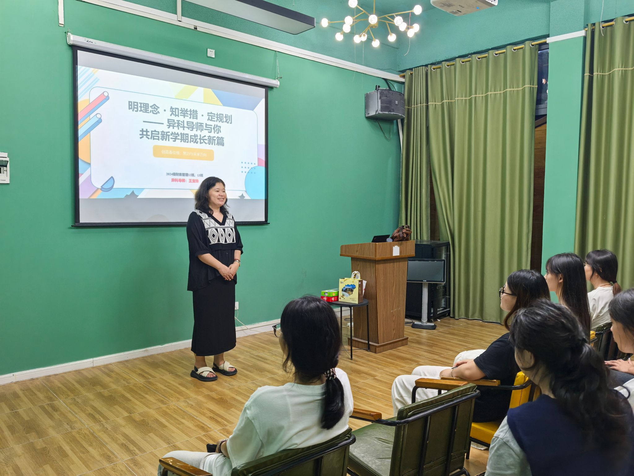为了搭建职业规划框架,帮助学生清晰新学期成长方向,为后续学习与发展筑牢基础,9月29日异科导师王宝珠在花果书院多功能活动室开展了“明理念・知举措・定规划。