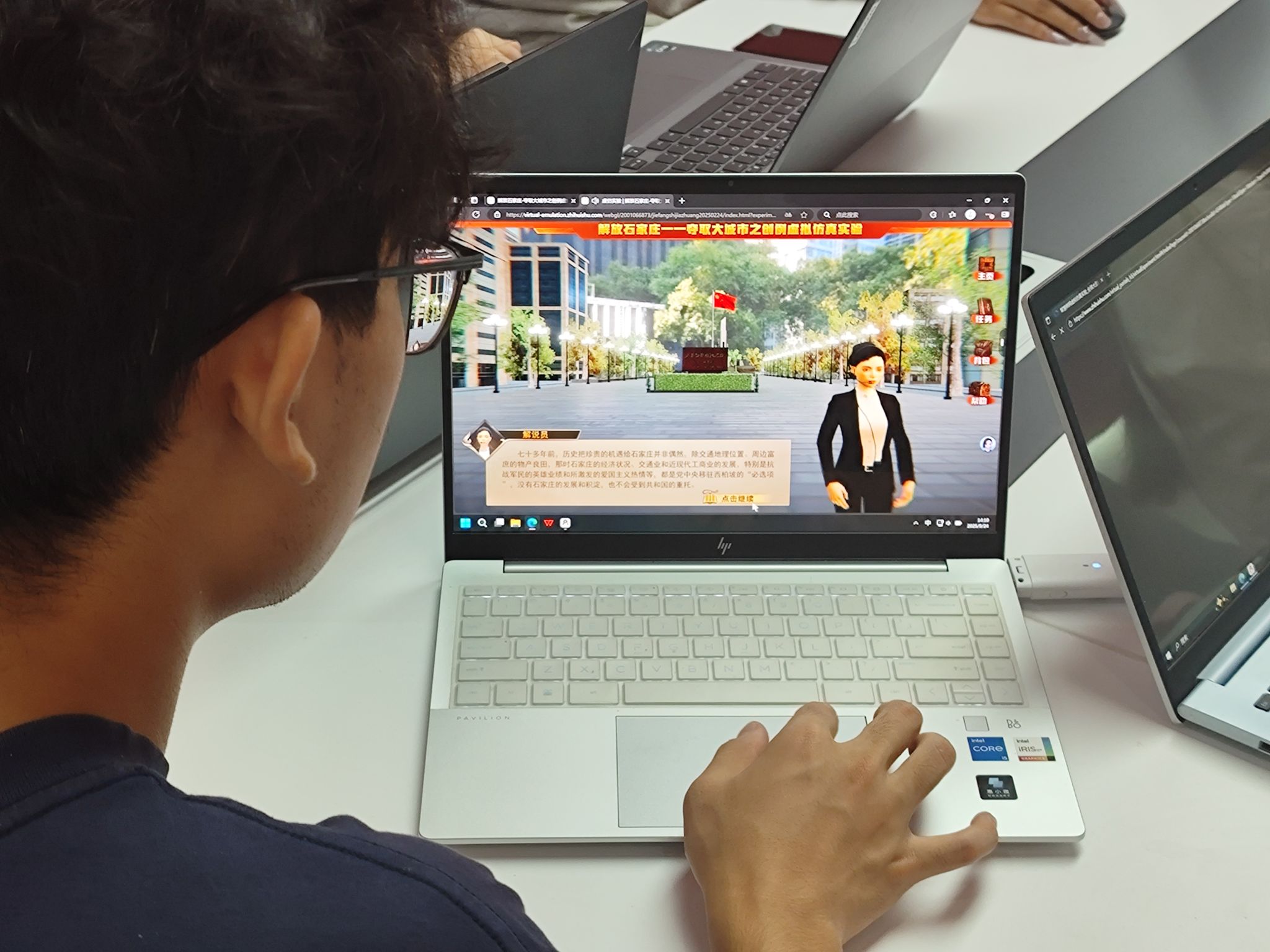 活动伊始,李潇潇老师围绕红色虚拟仿真技术的原理、优势及教育价值展开介绍,重点说明“解放石家庄”虚拟仿真实验对还原历史场景、增强学生历史感知的作用,帮助学生快速理解活动核心目标。随后,李潇潇老师现场演示实验第一个板块,通过操作虚拟场景,生动还原解放石家庄战役的关键背景与初始进程,让学生直观感受“夺取大城市之创例”的历史意义。演示结束后,学生分组自主探索剩余三个板块,沉浸式参与战役战术推演、历史细节还原等互动操作,在实践中深化对红色历史的认知。