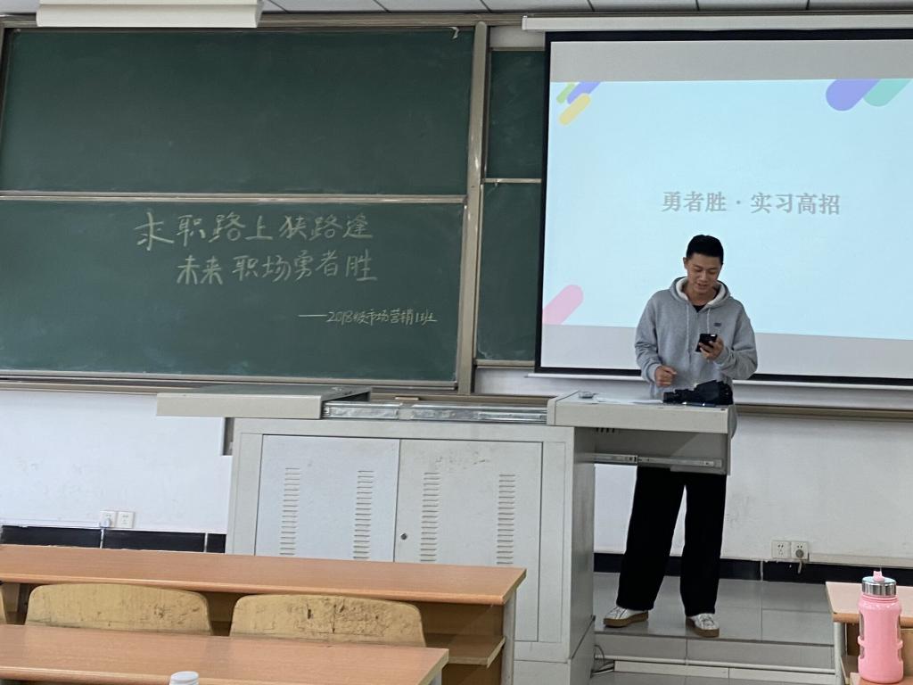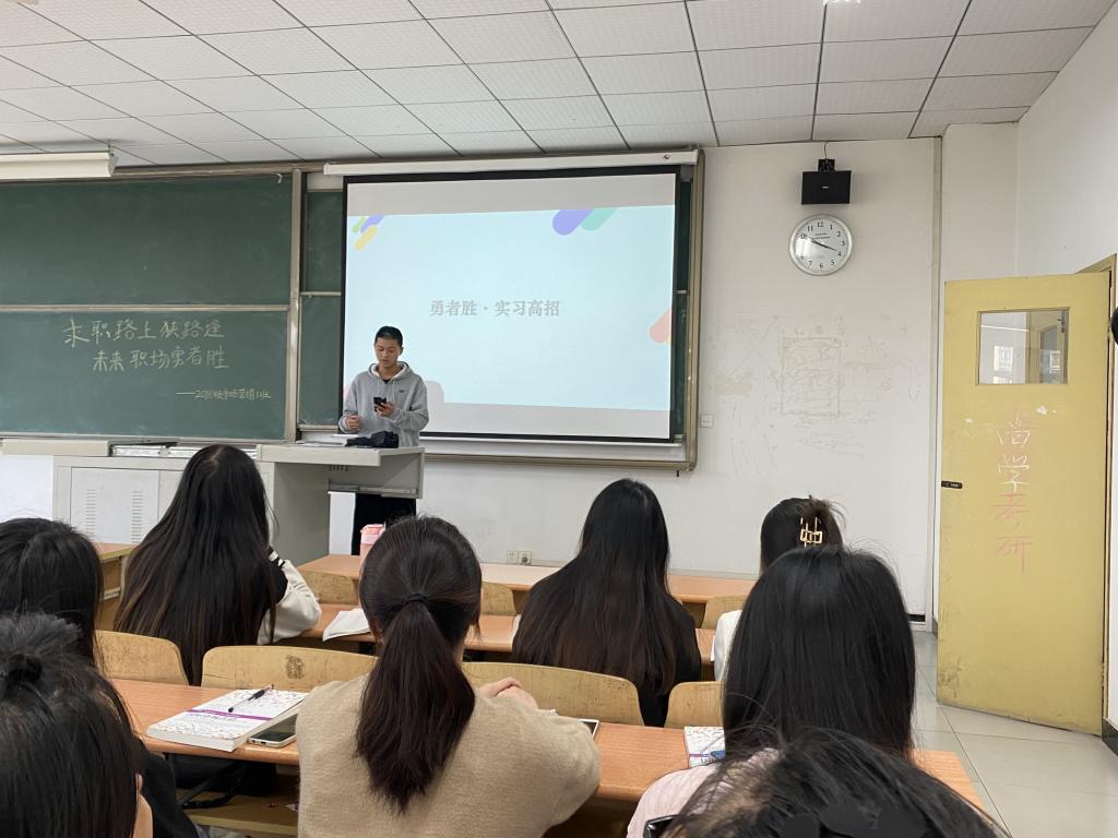 就业实习是学生进入职场前的一次实战演习。对于毕业生来说,实习机会是非常珍贵的,同龄人的经验也很有必要。所以,活动特地邀请了班级中有经验的同学进行分享。