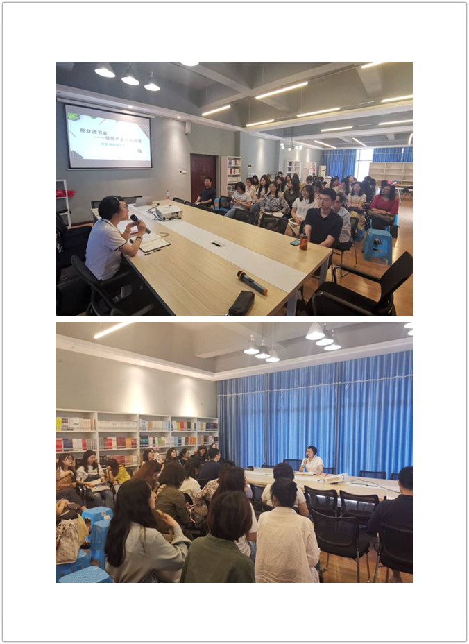 进入21世纪信息社会,信息技术更新迭代加快,信息传播的速度、方式与途径在裂变式更新,信息亦在创造价值!为了提升淬炼·国际商学院师生对学校“信息产业商学院”定位的深入理解,同时丰富课堂教育和授课资源,2021年5月19日,淬炼·国际商学院全体教师在五教5楼商学图书馆进行了“我读我讲我分享”主题的《信息产业大咖传记阅读》之商业读书分享交流会,会议由曾璐副院长主持。
