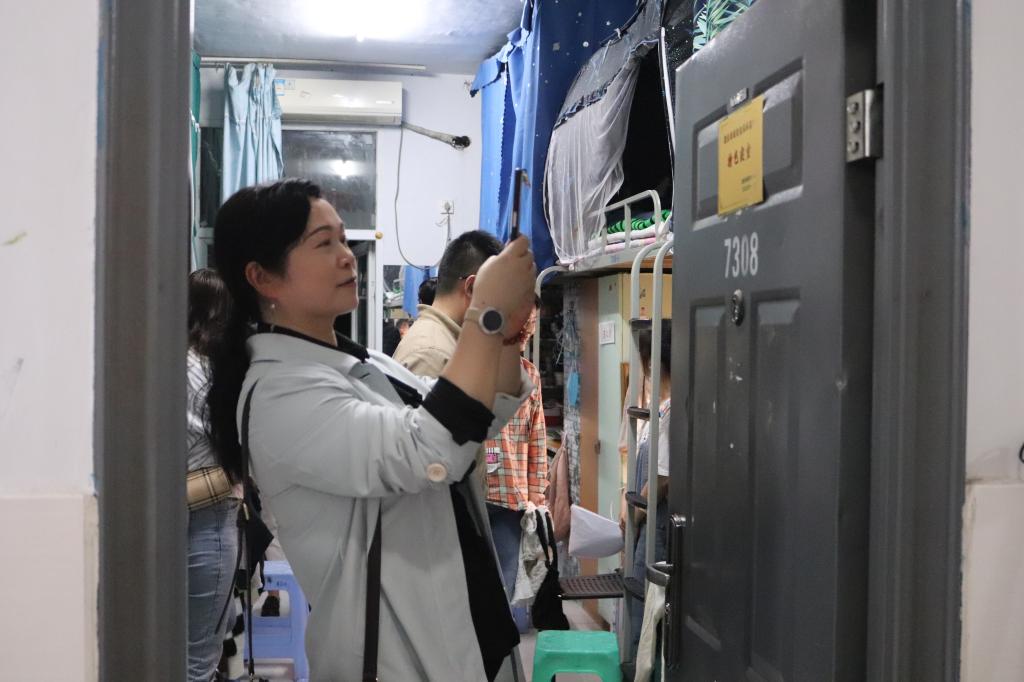 宿舍环境不仅在内也在外,走廊、楼道、洗衣房等等,都是同学们平时生活的必要场所,三个小组均对宿舍楼的整体环境进行了安全隐患检查,针对消防栓是否能用?洗衣房是否安全?走廊是否存在安全隐患?等一系列问题重点检查,跟随的班导师们对不妥当之处进行着重记录,在安全检查结束后将情况反映至学院处,后期针对出现的情况开展安稳及意识形态工作研判,以充分排除寝室安全隐患。