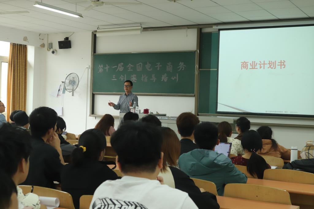 此次培训分为三个阶段:第一阶段,廖教授主要围绕“用怎样的态度对待‘三创赛’”展开;第二阶段,廖教授就“三创赛”举办的目的及商业计划书的撰写做了相关说明;第三阶段,廖教授与参赛学生进行互动答疑。