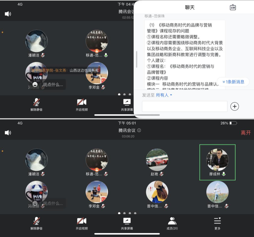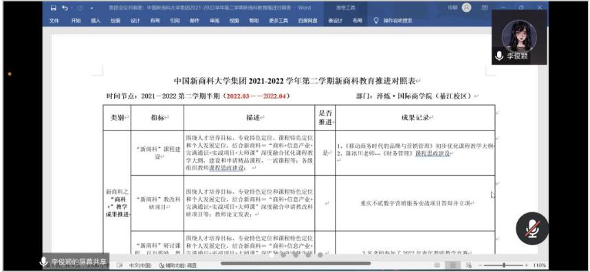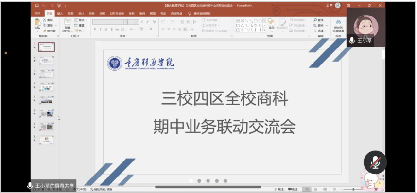 会议的第一项议程是三校四区的全校商科教育推进工作主题汇报,分别由重庆移通学院合川校区领导力课程教研室王草老师、重庆移通学院綦江校区李俊颖老师、晋中信息学院领导力课程教研室张文燕老师以及泰山科技学院领导力教研室牛敏老师作为代表发言。各位老师分别就“商科+教学成果”、“商科+信息产业”、“商科+完满通识”、“商科+实战项目”以及“商科+大师课”五个方面的前半期工作进行了主题汇报,分析了三校四区在推动全校商科教学过程中的成果及不足之处,提出了三校四区后半学期在推动全校商科教育工作的发展方向及实施路径。