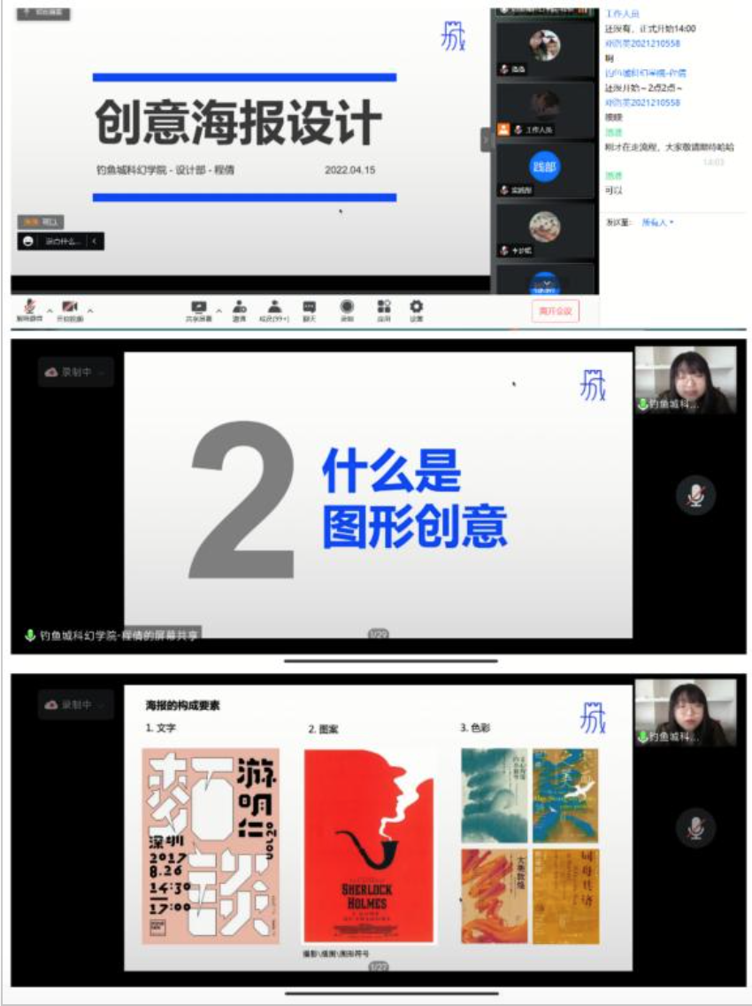 为激发学生大赛的创作灵感,培养学生的文案策划、平面设计、短视频等创作能力,淬炼·国际商学院于4月15日在腾讯会议开展了第四届“闪耀移通”招生广告创意设计大赛线上分享会。本次活动有幸邀请到了重庆移通学院钓鱼城科幻学院设计部程倩老师、上届比赛特等奖获奖团队队长王弘玺进行了线上直播分享。同时还特别邀请了重庆小二郎文化传媒有限公司饶晨霖老师录制了分享视频(见附件网址)。