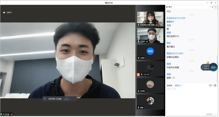 分享会结束,同学们都积极主动地参与互动提问环节。其中程倩老师针对同学们提到的“如何创新、搜集素材、制作海报标准”等问题进行了解答。她指出,创新可以采用今天分享的创意手法进行,并通过学校官网、公众号等新媒体平台搜集素材。海报制作重点是内容,尺寸标准等可根据内容调整。王弘玺学长针对同学们提出的短视频创作问题进行了解答。他建议,学弟学妹创作视频前先进行实地参观寻找创意点,然后再开展文案策划、脚本撰写、视频拍摄、剪辑处理等工作。拍摄视频的长短,可以根据选定的平台进行确定。他同时建议,学弟学妹可根据本小组成员的时间精力选择参赛作品形式,精力有限的可以只选择一种参赛作品形式,并做到极致。