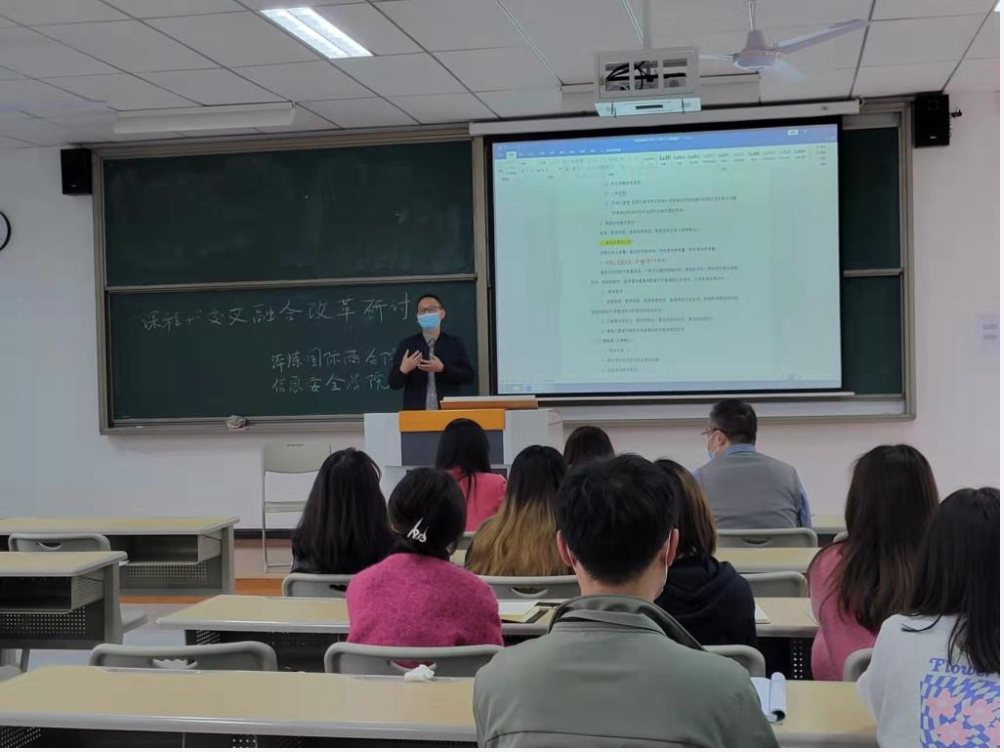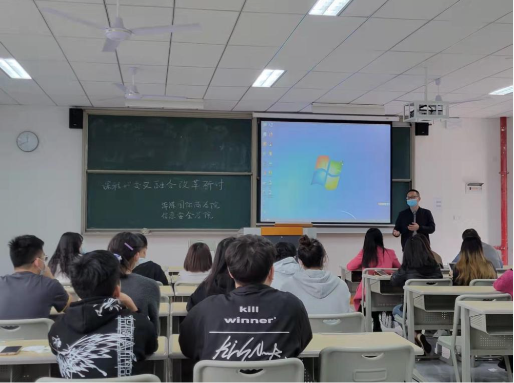 为践行我校新商科教育模式,同时探索商科教育与专业教育的融合,4月6日下午16:00,淬炼·国际商学院与信息安全学院在勇者楼303教室一起开展了“课程+”交叉融合改革研讨会。淬炼·国际商学院全体教师、信息安全学院王宁副院长、郑慧娟老师、谢志红老师以及学生代表参会。会议由淬炼·国际商学院范保珠副院长主持。
