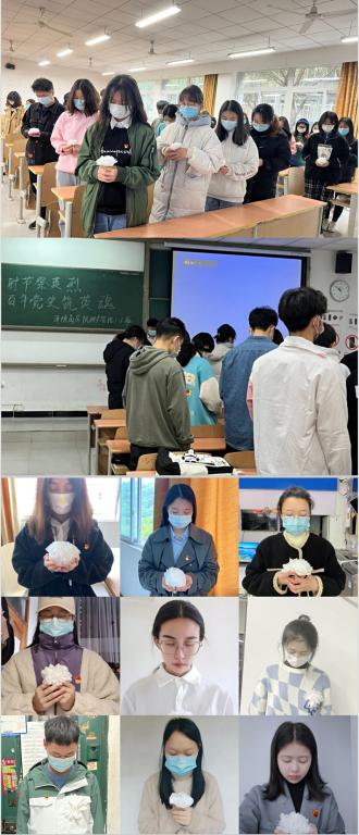 铭记过去、传承历史,是一个民族成熟的标志,追忆革命先烈,并不仅仅是对某个人的缅怀,更重要的还是重温一段不该忘记的历史,感受一种永不磨灭的精神,汲取一种自强不息的力量。纸花折叠完毕,由师生党员、团干部带领大家面朝南方行默哀礼,表达对革命先烈、3·21空难罹难者,以及抗击新冠肺炎疫情斗争牺牲的英雄的哀思、缅怀。