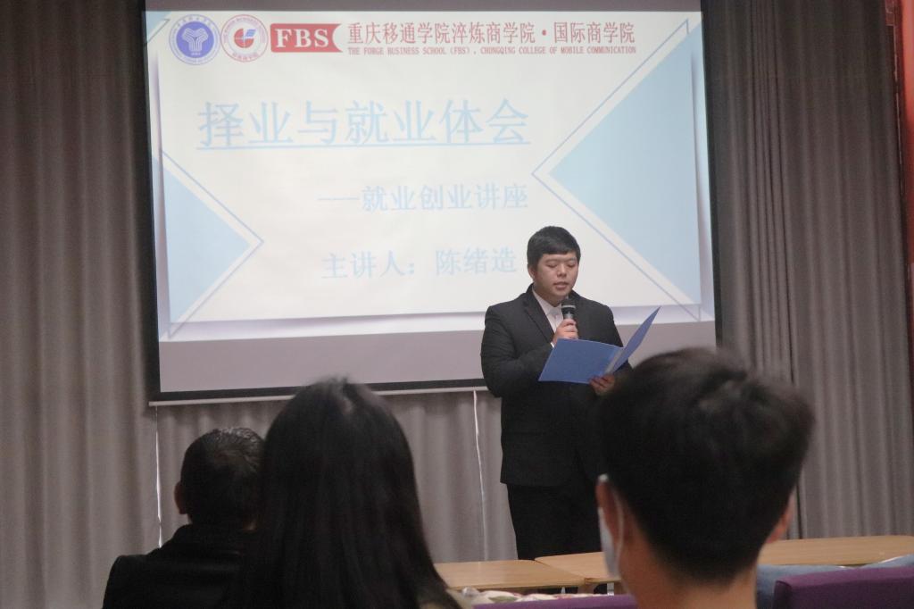 新冠疫情对我国经济发展造成巨大冲击,就业形势越发严峻,为解决大学生就业难的问题,淬炼·国际商学院就业助理团实践部于2022年3月9日14:30在别都书院四维空间举办了“择业与就业体会”——就业创业讲座,本次活动有幸邀请到了重庆原创规划设计有限公司董事长、总经理,重庆市规划协会常务理事,合川区人大常委陈绪造先生。活动覆盖三个专业同学并采用线下的方式开展。