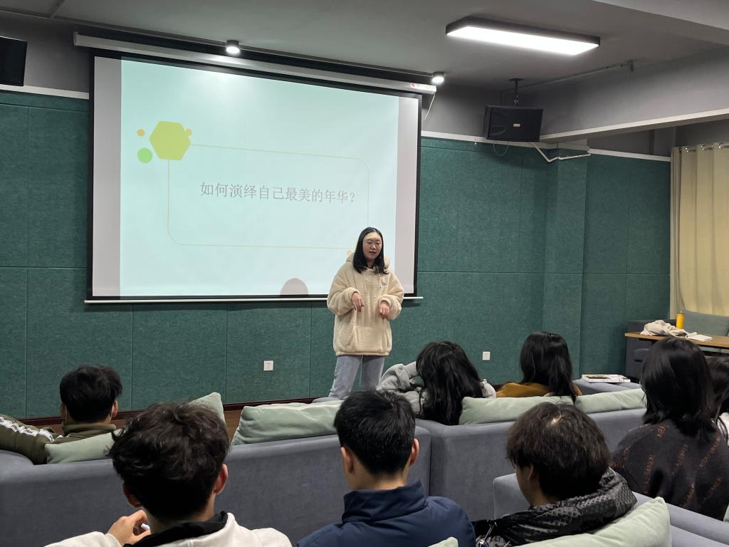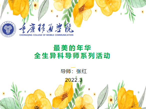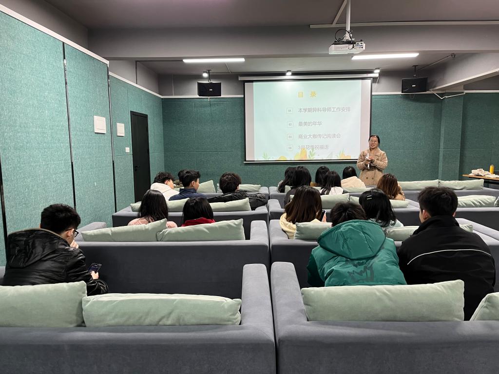 新学期,新气象,为使同学们更快开启新学期异科导师模式,3月4日中午12:30-14:00,淬炼·国际商学院异科导师张红老师和2021级工商管理专业专升本1班及财务管理高本3.4班的同学们在爱莲书院多功能影音室开展了以“最美的年华”为主题的交流活动,拉开了本学期异科导师的序幕。