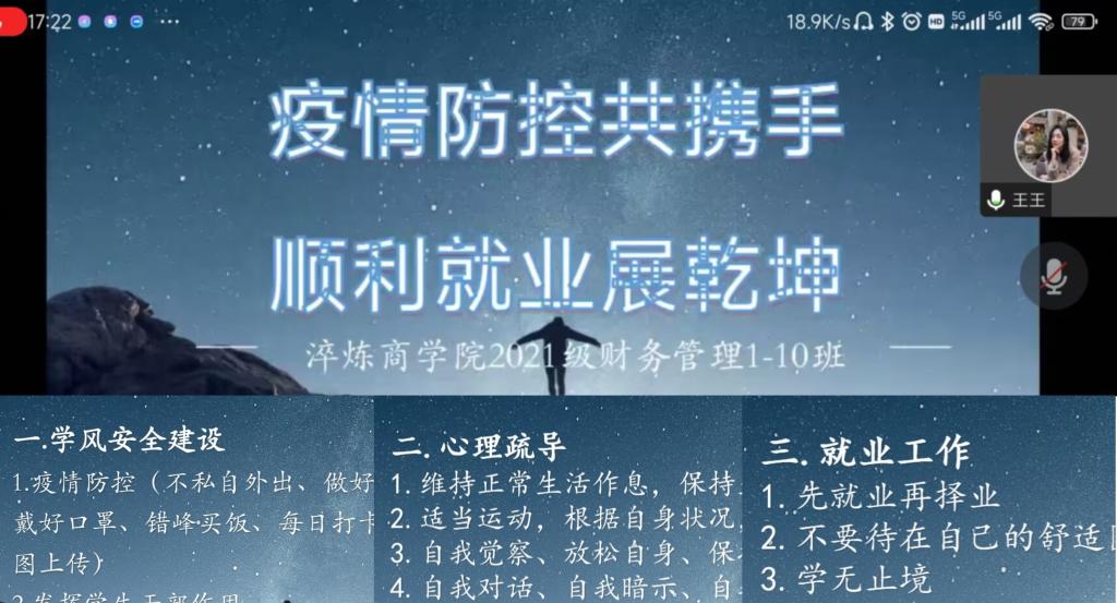 为纾解学生当前疫情防控、就业心理,提高学生就业能力,加强就业指导。2022年11月17-23日以来,2021级财务管理专升本1-10班持续开展“疫情防控共携手•顺利就业展乾坤”的专题线上就业指导活动,线上有专题,线下有指导,多维度、全覆盖专升本全体学生。